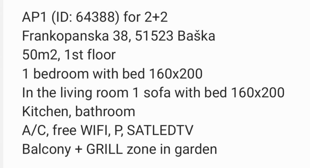 Les appartements Tea sont des appartements familiaux situés à Baška, sur l'île de Krk. Ils se trouvent à différents endroits de Baška, près de l'hôtel Sunny Corinthia et à Draga Baška. Entièrement équipés, ces appartements sont situés dans une rue calme, à proximité de la plage centrale de Vela Plaža.