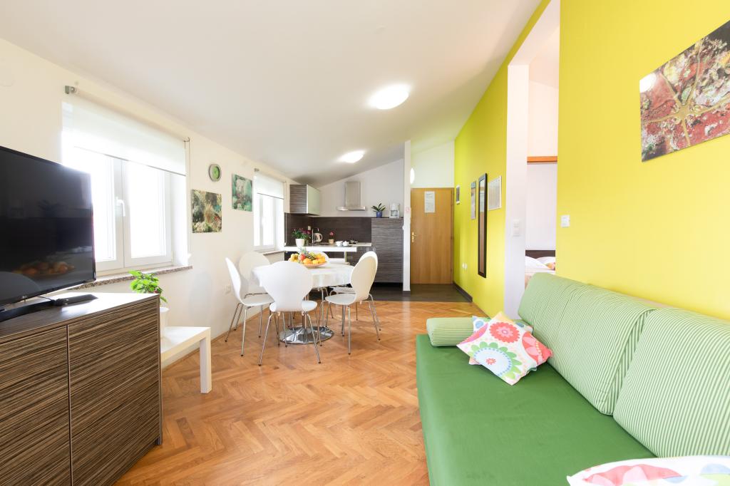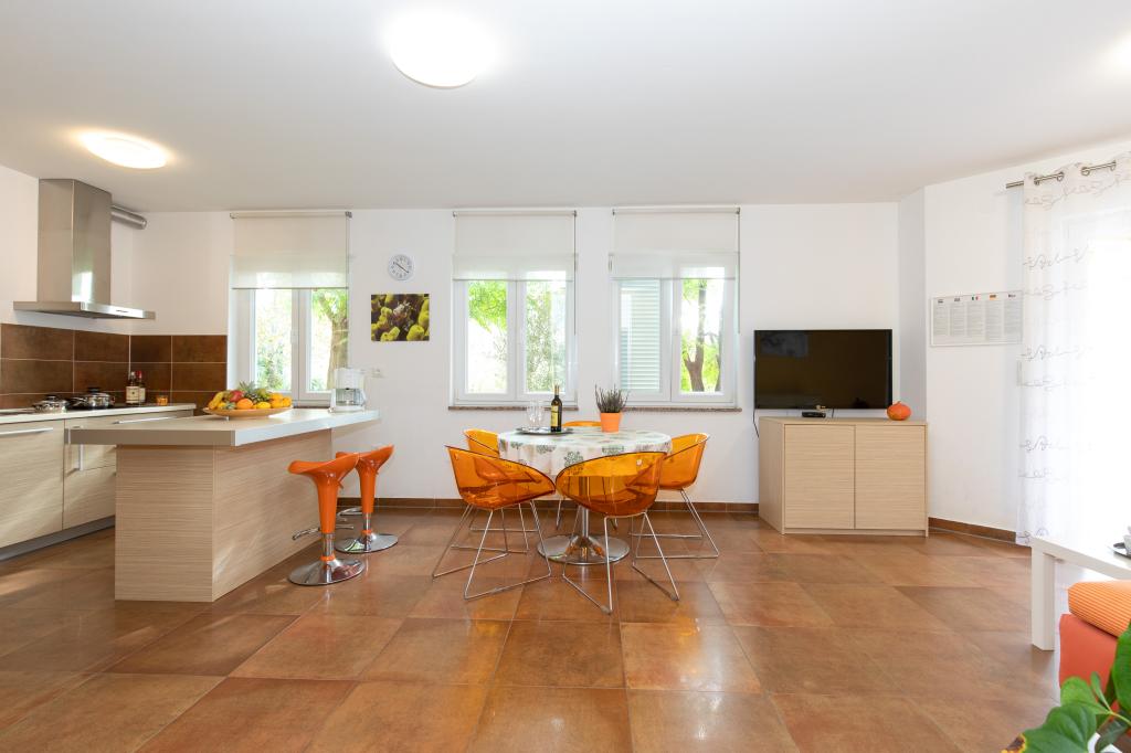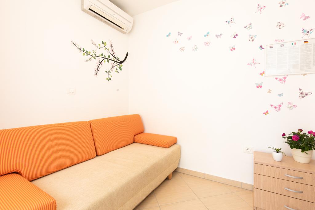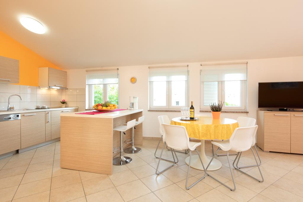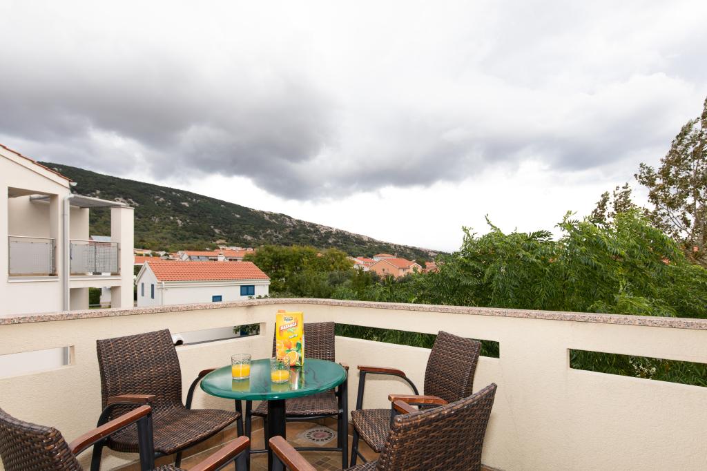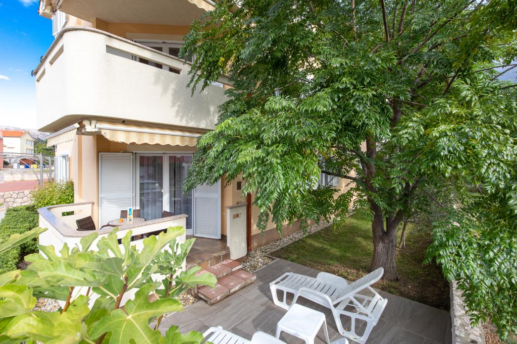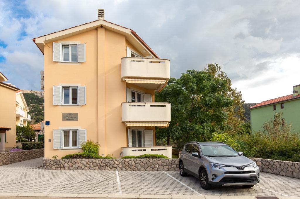 Les appartements VillaMare sont situés dans un quartier calme de Baška, à 5-7 minutes à pied d'une belle plage de sable ainsi que du centre lui-même avec toutes les commodités offertes par une ville touristique. Il y a 5 appartements dans la catégorie 4**** : 4 x A/4+2 pour max 4-6 personnes, 1 x A/2+2 pour max 2-4 personnes et un joli studio pour max 1-2 personnes. . Tous les appartements sont climatisés et équipés de façon moderne, WiFi gratuit, télévision par satellite, 1 place de parking par appartement ; dans la partie cour, un espace jardin avec barbecue, un gazebo en bois et une aire de jeux pour enfants est à la disposition de tous les hôtes. Un lit bébé, une chaise haute/chaise d'alimentation, un lave-linge sont disponibles sur demande. Tous les appartements de l'extension disposent d'une terrasse confortable où vous pourrez vous détendre complètement et profiter de la belle vue sur Baška et la montagne qui l'entoure, tandis que l'appartement au rez-de-chaussée dispose d'une terrasse supplémentaire étendue avec transats et accès direct au magnifique jardin ( ...et des figuiers :- )