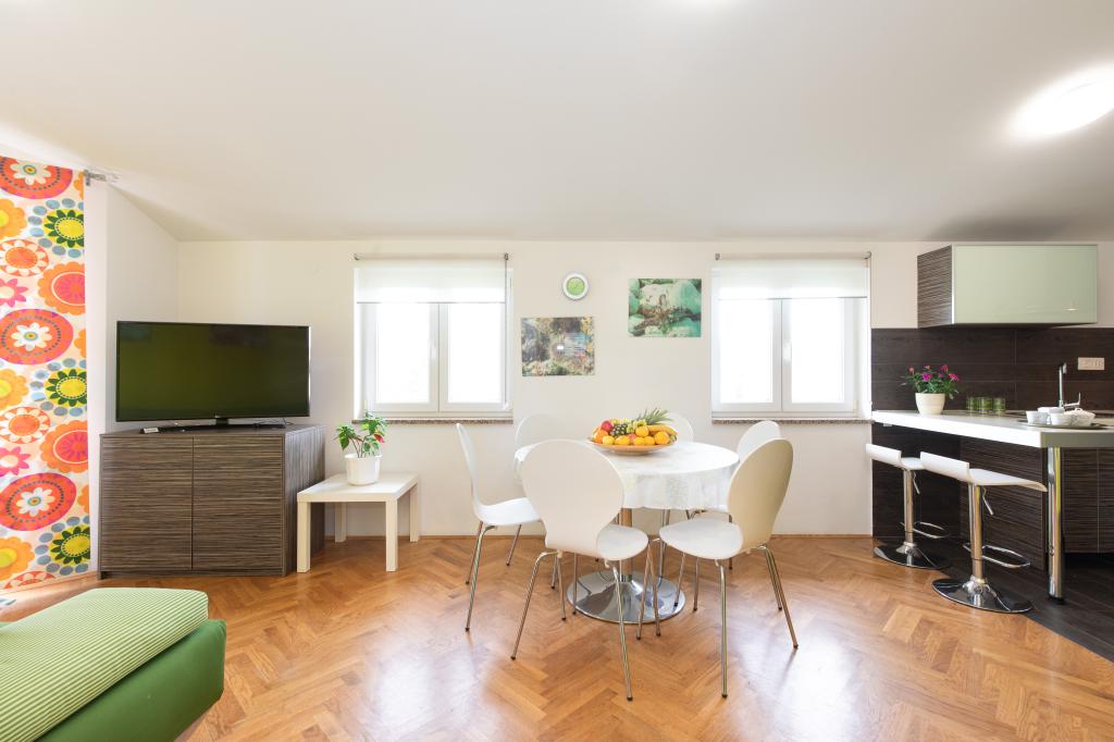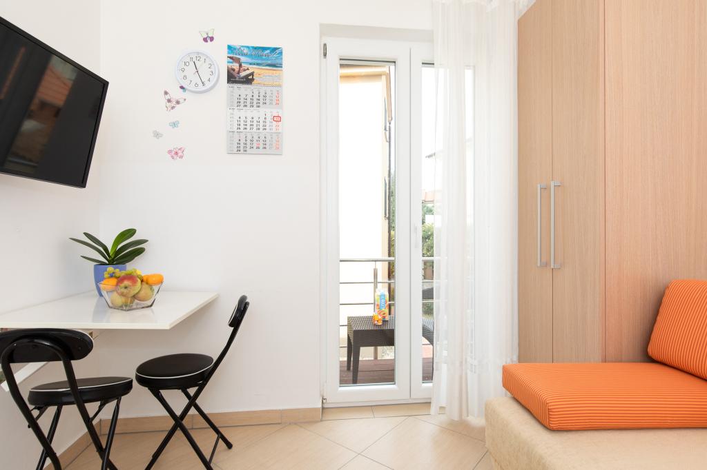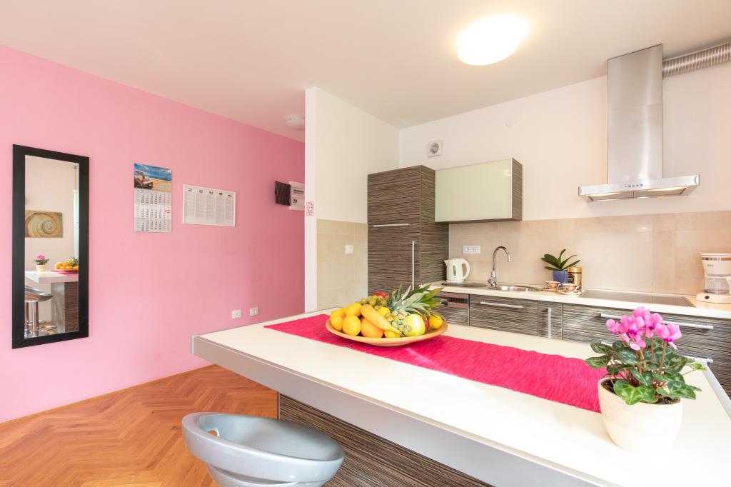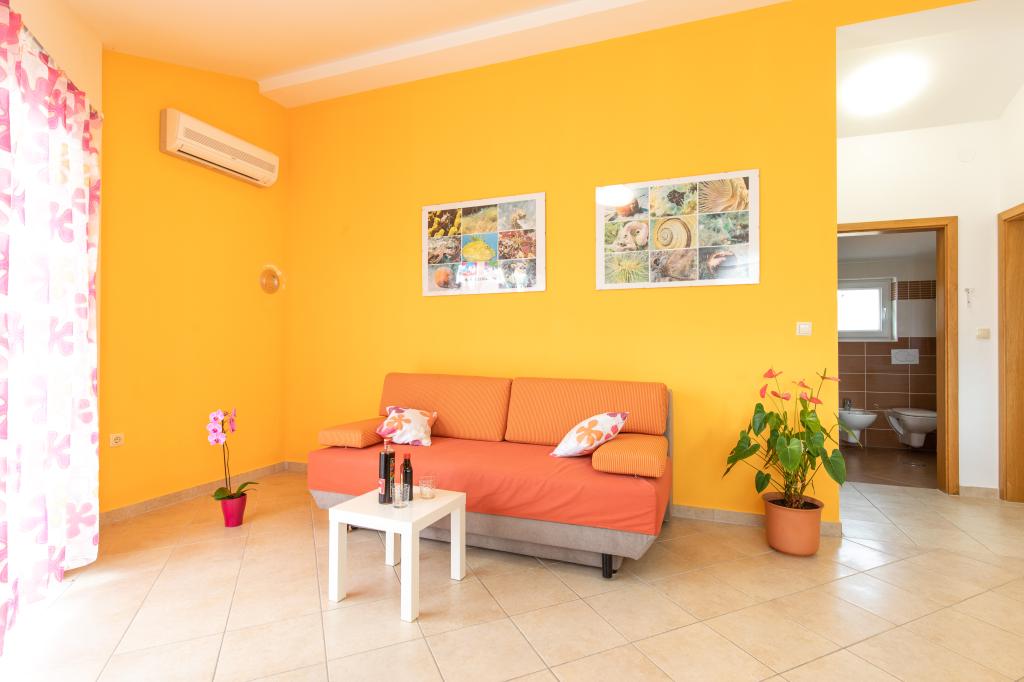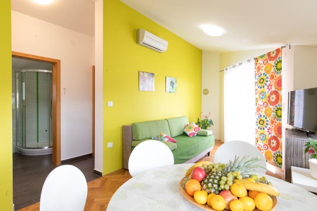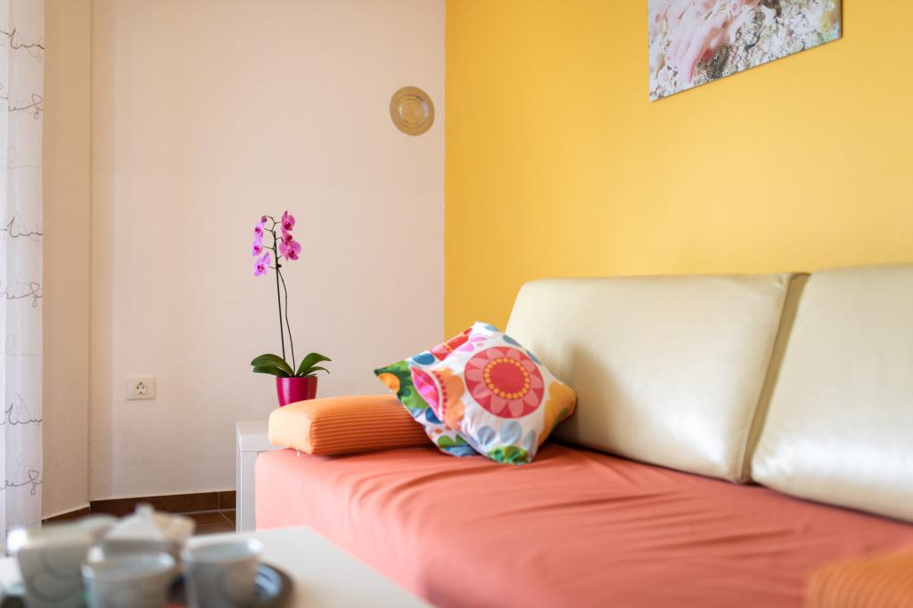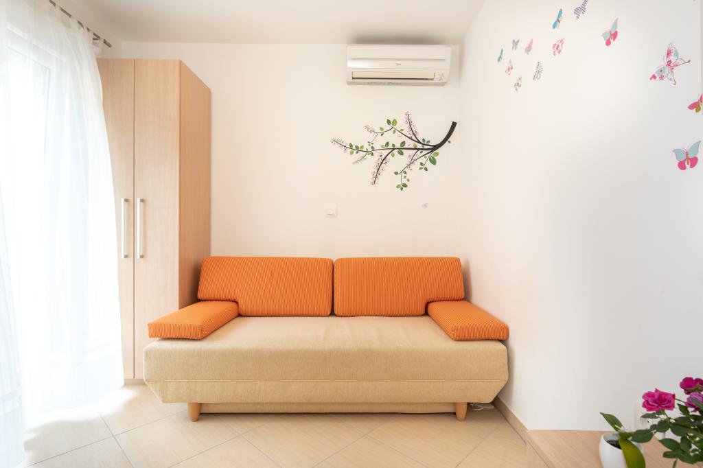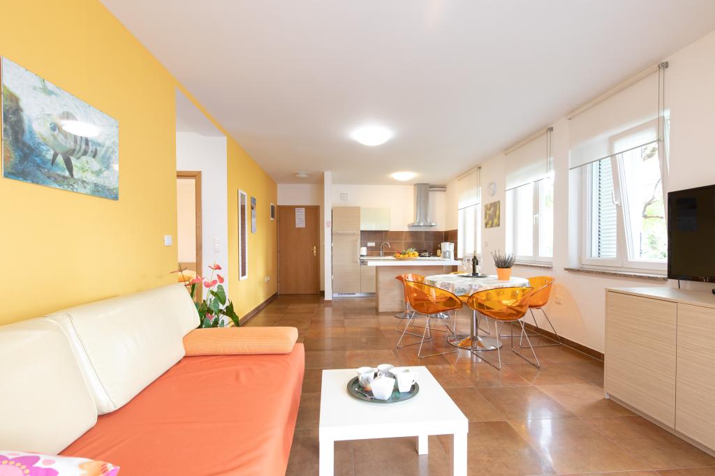 Les appartements VillaMare sont situés dans un quartier calme de Baška, à 5-7 minutes à pied d'une belle plage de sable ainsi que du centre lui-même avec toutes les commodités offertes par une ville touristique. Il y a 5 appartements dans la catégorie 4**** : 4 x A/4+2 pour max 4-6 personnes, 1 x A/2+2 pour max 2-4 personnes et un joli studio pour max 1-2 personnes. . Tous les appartements sont climatisés et équipés de façon moderne, WiFi gratuit, télévision par satellite, 1 place de parking par appartement ; dans la partie cour, un espace jardin avec barbecue, un gazebo en bois et une aire de jeux pour enfants est à la disposition de tous les hôtes. Un lit bébé, une chaise haute/chaise d'alimentation, un lave-linge sont disponibles sur demande. Tous les appartements de l'extension disposent d'une terrasse confortable où vous pourrez vous détendre complètement et profiter de la belle vue sur Baška et la montagne qui l'entoure, tandis que l'appartement au rez-de-chaussée dispose d'une terrasse supplémentaire étendue avec transats et accès direct au magnifique jardin ( ...et des figuiers :- )
