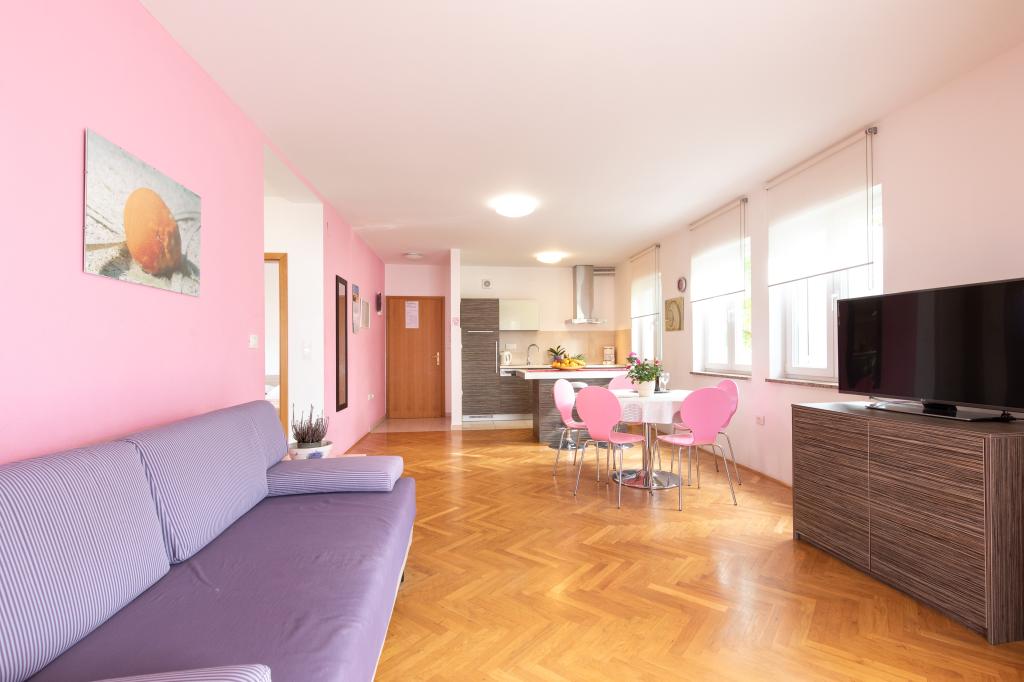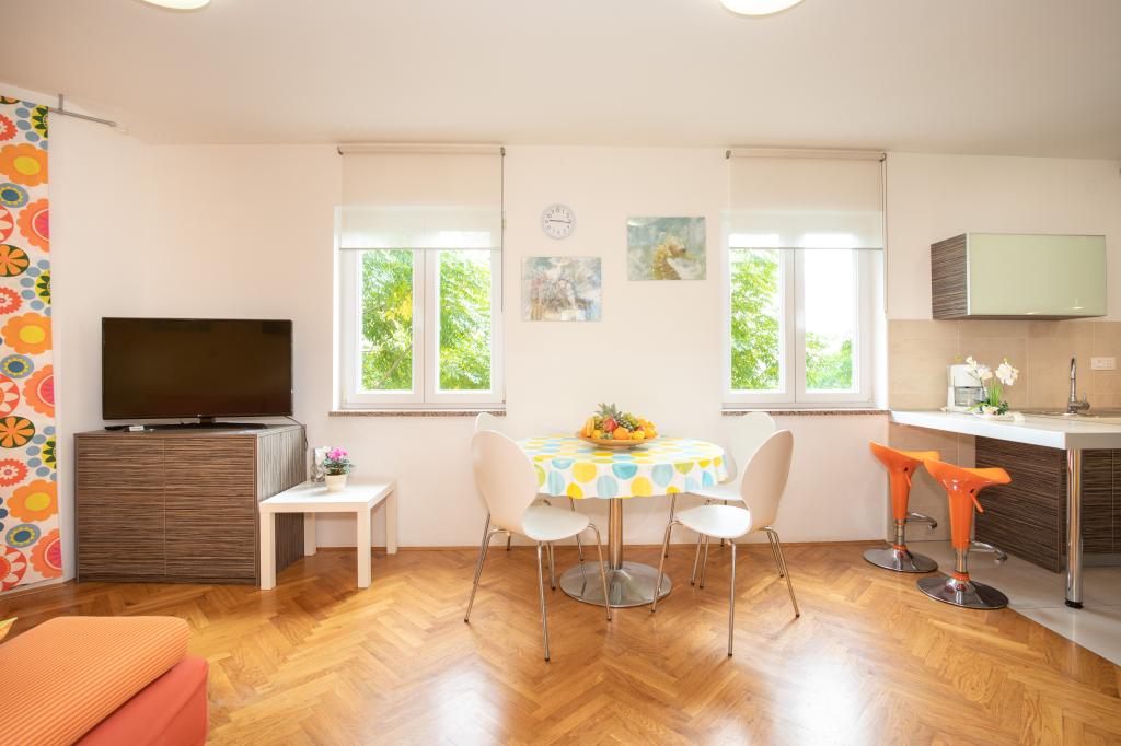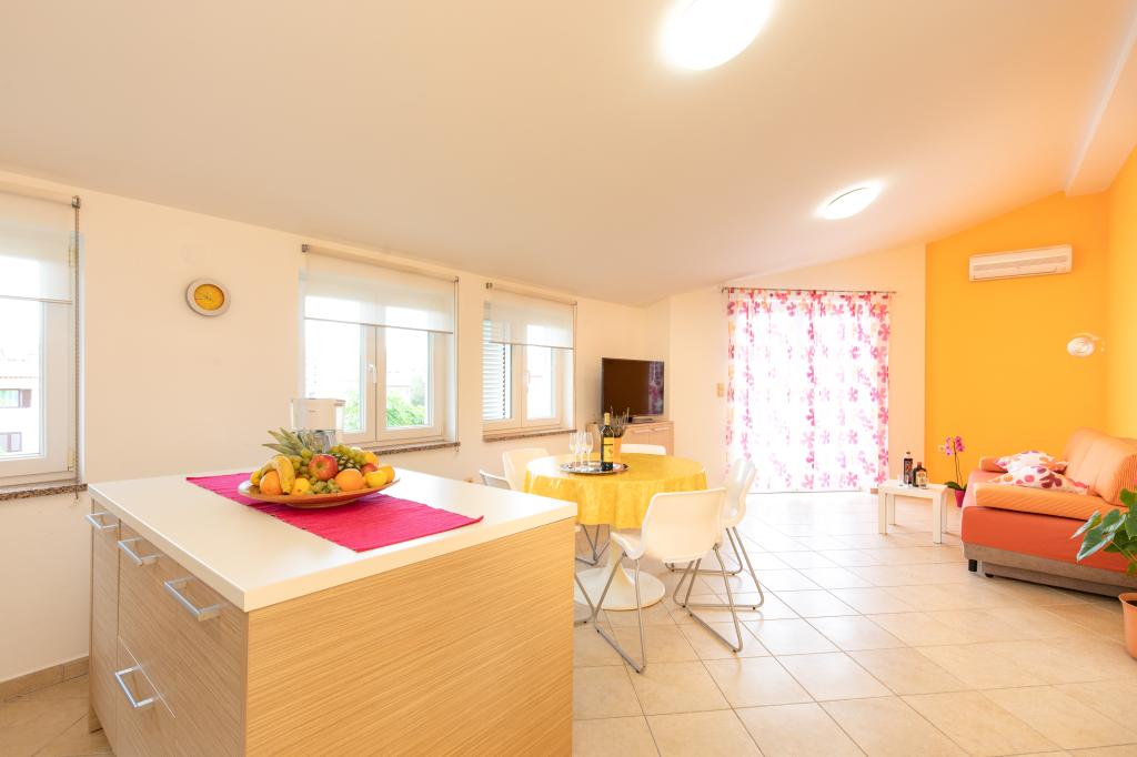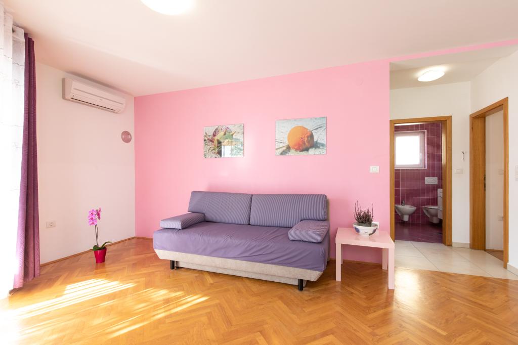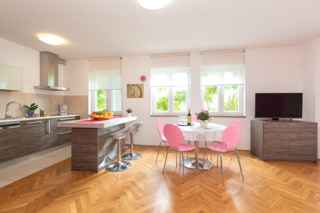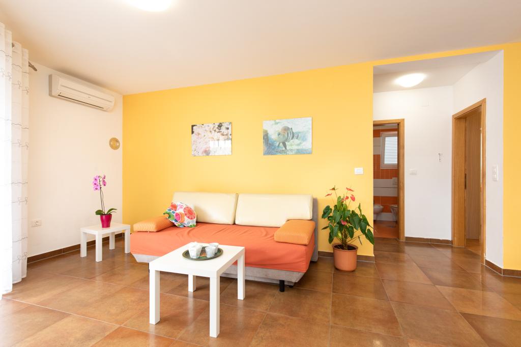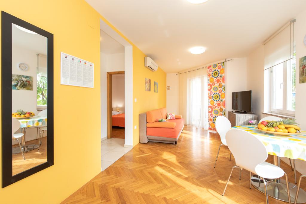 Les appartements VillaMare sont situés dans un quartier calme de Baška, à 5-7 minutes à pied d'une belle plage de sable ainsi que du centre lui-même avec toutes les commodités offertes par une ville touristique. Il y a 5 appartements dans la catégorie 4**** : 4 x A/4+2 pour max 4-6 personnes, 1 x A/2+2 pour max 2-4 personnes et un joli studio pour max 1-2 personnes. . Tous les appartements sont climatisés et équipés de façon moderne, WiFi gratuit, télévision par satellite, 1 place de parking par appartement ; dans la partie cour, un espace jardin avec barbecue, un gazebo en bois et une aire de jeux pour enfants est à la disposition de tous les hôtes. Un lit bébé, une chaise haute/chaise d'alimentation, un lave-linge sont disponibles sur demande. Tous les appartements de l'extension disposent d'une terrasse confortable où vous pourrez vous détendre complètement et profiter de la belle vue sur Baška et la montagne qui l'entoure, tandis que l'appartement au rez-de-chaussée dispose d'une terrasse supplémentaire étendue avec transats et accès direct au magnifique jardin ( ...et des figuiers :- )