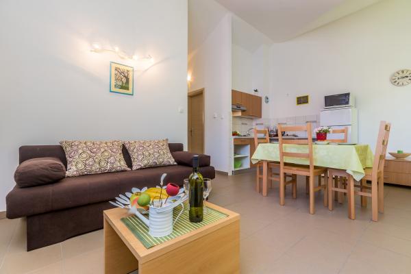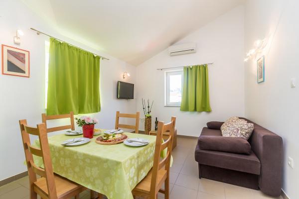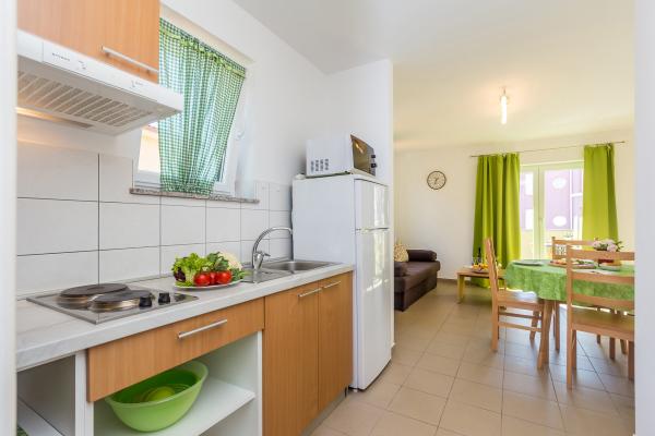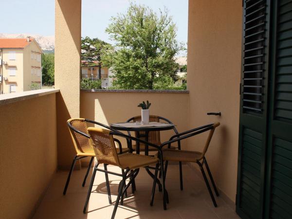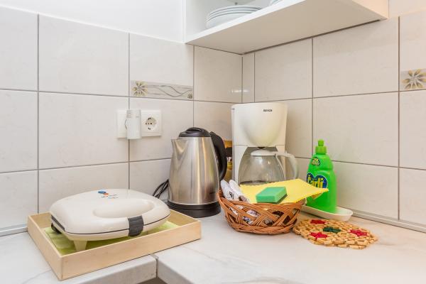La Villa Mirica, un établissement 4 étoiles, propose 4 appartements modernes et entièrement équipés (2 de chaque côté). D'une superficie de 40 m², ils disposent d'une terrasse privative couverte de 10 m² dans un quartier calme de Baška, avec vue sur le jardin et une rue tranquille. La plage de Vela et toutes les commodités sont accessibles en 5 minutes à pied. Les appartements Mirica comprennent une chambre double, une salle de bain avec douche, sèche-cheveux, lave-linge et lessive, une cuisine équipée avec lave-vaisselle, réfrigérateur et sèche-cheveux, un salon avec canapé-lit et surmatelas de 5 cm d'épaisseur, table et fer à repasser, grille-pain, bouilloire, micro-ondes et friteuse à air chaud. Chaque appartement peut accueillir jusqu'à 4 personnes. Les appartements sont modernes et équipés du Wi-Fi gratuit, d'un parking gratuit couvert par des panneaux solaires, de la climatisation, d'une terrasse privative, d'une télévision par satellite, d'un coffre-fort, du linge de lit et des serviettes. Les 4 appartements sont identiques et parfaitement équipés. Une borne de recharge pour véhicules électriques est disponible gratuitement sur le parking (sur demande). Un barbecue est à votre disposition dans le jardin. Un lit bébé et une chaise haute sont disponibles sur demande.
