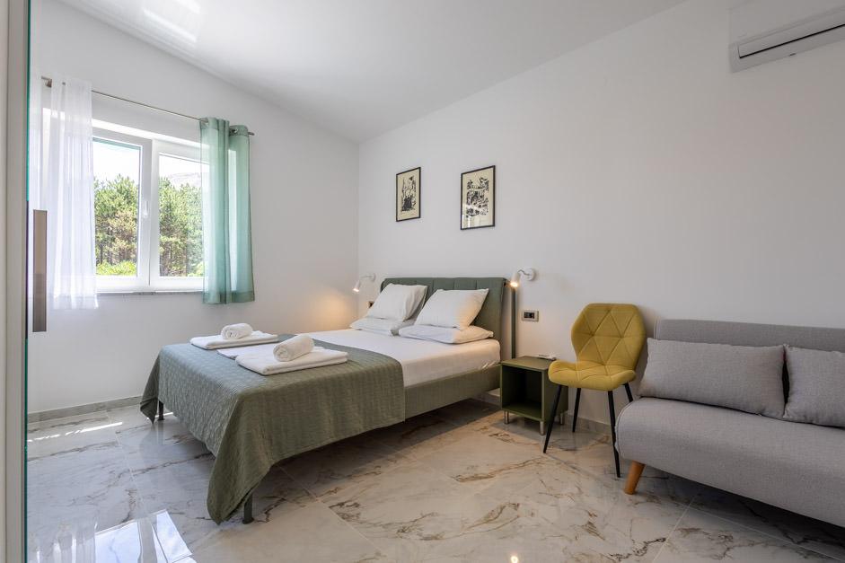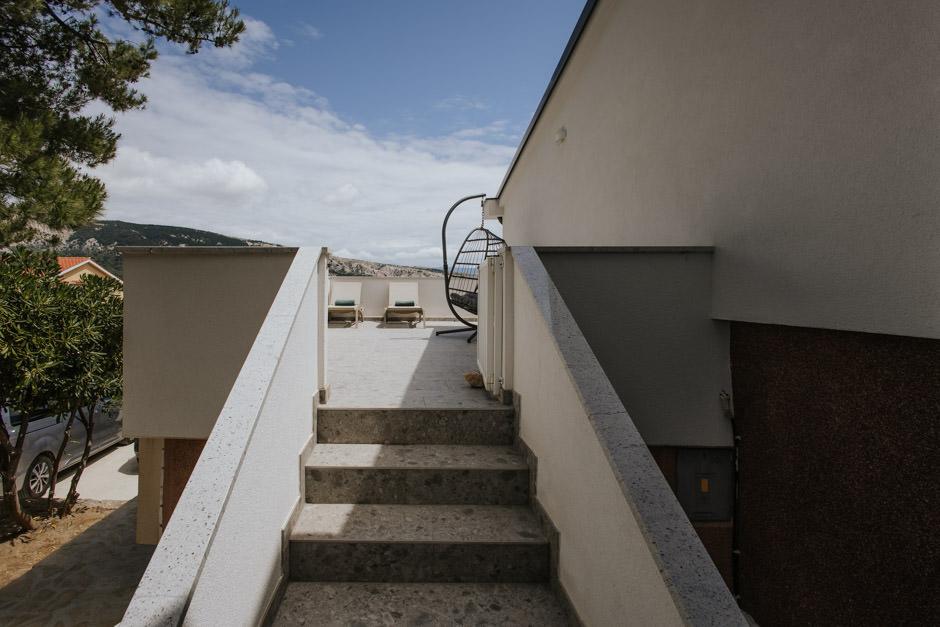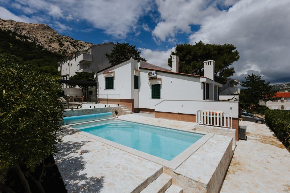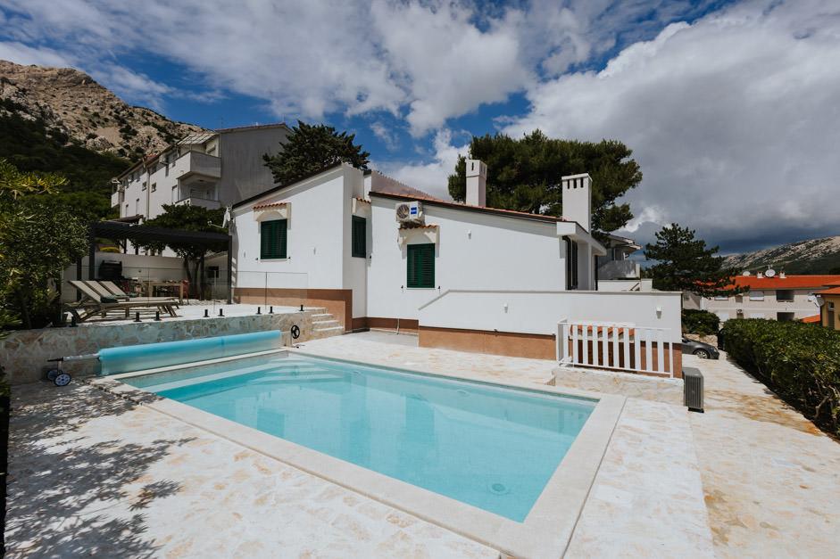 Notre Villa Zlata récemment rénovée est située à Baška, la perle touristique de la baie cachée de l'île de Krk. La maison se trouve à 400 m du centre-ville et à 200 m de la mer, dont les vagues frappent la plage de galets longue de 1800 m. Baška est un lieu au riche passé et au patrimoine culturel, et non loin de là, à Jurandvor, se trouve le célèbre Bašćanska ploča, l'un des plus anciens monuments écrits en langue croate. La Villa Zlata propose un hébergement pour 4+2 personnes, elle accepte également les animaux domestiques, elle se fera donc un plaisir d'héberger votre animal également. Elle est entièrement décorée et équipée, et elle est située dans un environnement intime d'une pinède où vous pourrez profiter de la piscine privée chauffée nouvellement construite. Vous pourrez ressentir le plaisir particulier des vacances en vous relaxant avec le grill extérieur et le belvédère, tandis que les plus jeunes pourront s'amuser dans la sécurité de l'aire de jeux pour enfants. Pour une fin idéale d'une journée d'été, détendez-vous sur deux terrasses aux odeurs de pins et avec vue sur la baie enchanteresse où le doux bleu de la mer et du ciel se mêle à la dureté de l'immense Velebit au loin.