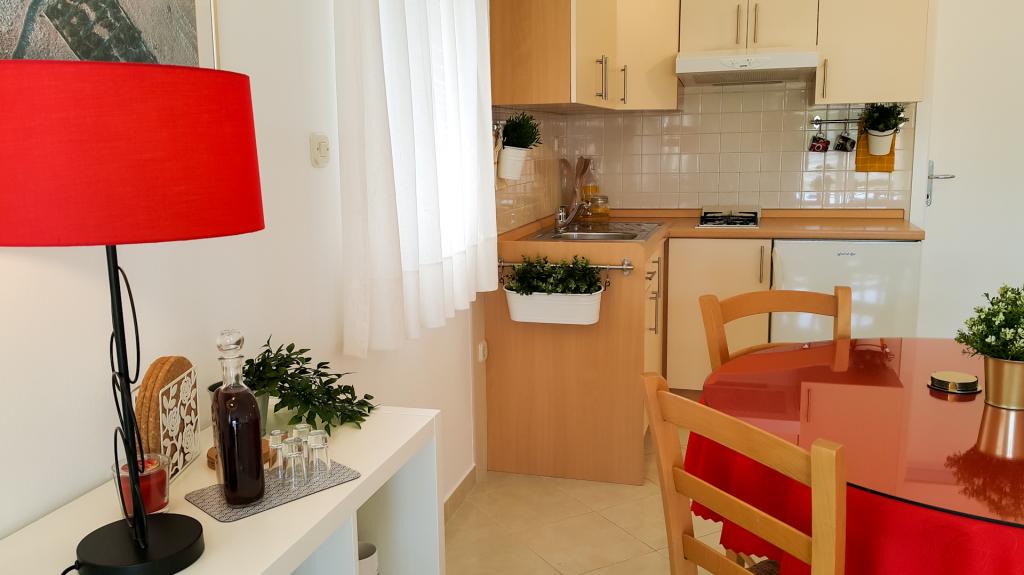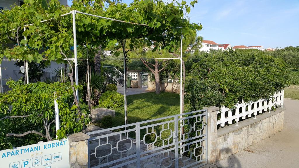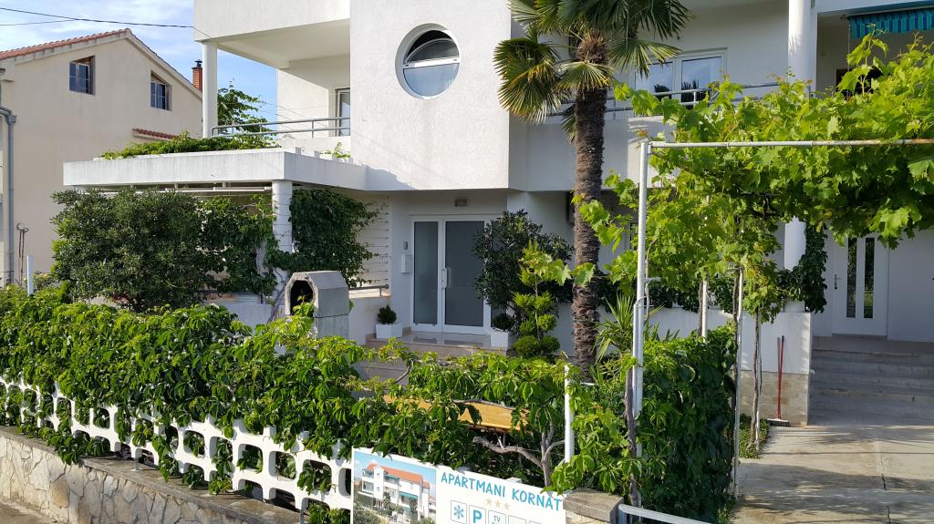 Appartements à la décoration moderne dans un quartier calme de Betina sur l'île de Murter, à 100 mètres de la plage de la ville. Les appartements Kornat sont situés à 300 mètres du centre de Betina et à 800 mètres du centre de Murter. Chaque appartement dispose d'une grande terrasse couverte et séparée des terrasses voisines. L'internet sans fil, l'utilisation de la climatisation, la consommation d'eau, d'électricité et de gaz, le changement hebdomadaire du linge de lit et des serviettes, les produits de nettoyage et le nettoyage final de l'appartement sont inclus dans le prix. L'établissement se trouve à environ 60 m de la route, ce qui garantit aux hôtes de vraies vacances. Les cuisines des appartements sont entièrement équipées pour préparer et servir les repas. Les propriétaires des appartements Kornat accordent une attention particulière à la propreté, avec le désir que les clients se sentent comme chez eux. Les clients ont accès à un barbecue dans la cour.
