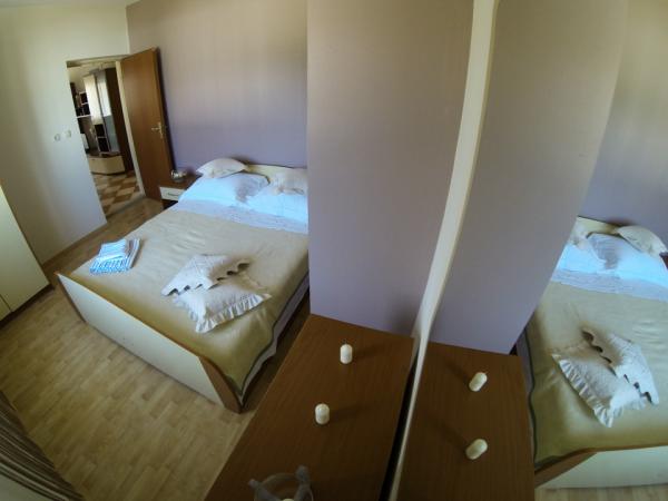 Très bon, propre et soigné hébergement, meilleure pour deux couples ou pour les familles comme la mienne 2 + 1 + 1 - chaque enfant avait sa propre chambre et grand lit. Détendez-vous adapter ici 5 personnes (2 + 2 + 1). Très proche de la mer. - Peut-être 50 mètres La paix et la tranquillité, loin de la route animée et bruyante. Equipements bonne. Délicieusement, il sourit hôtesse qui chaque jour loin de donner nos pastèques ou des fruits, des tomates ou votre naleweczką .... parole de tout ce qu'elle avait. Les magasins sur des achats importants Vous avez à conduire quelques kilomètres, mais qu'à cela ne tienne, car vous pouvez combiner le voyage avec une visite par exemple. Zadar. Pour les achats quotidiens vous pouvez aller à la boutique à environ 10 minutes de l'hébergement ou acheter un stand pieczywko 3 mètres de l'établissement. Très wypoczęliśmy, et ces 10 jours ont passé beaucoup trop vite .... Je recommande fortement ce LOGEMENT. Nous allons certainement revenir. Je salue cordialement les Mayas et sa maman !!!!! Caroline de la Famille, de la Pologne.