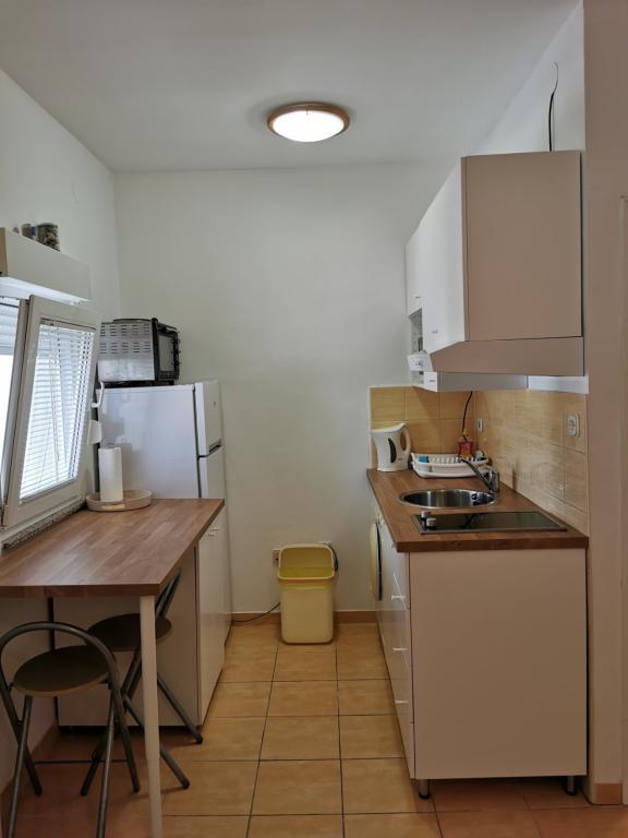 Appartement studio avec terrasse. Hébergement pour 2plus1 personnes, salle de bain, cuisine, parking. Proche de la plage (deuxième rangée de la mer), proche de la plage de la ville (100m) et proche du centre de Bibinje avec restaurants, cafés.