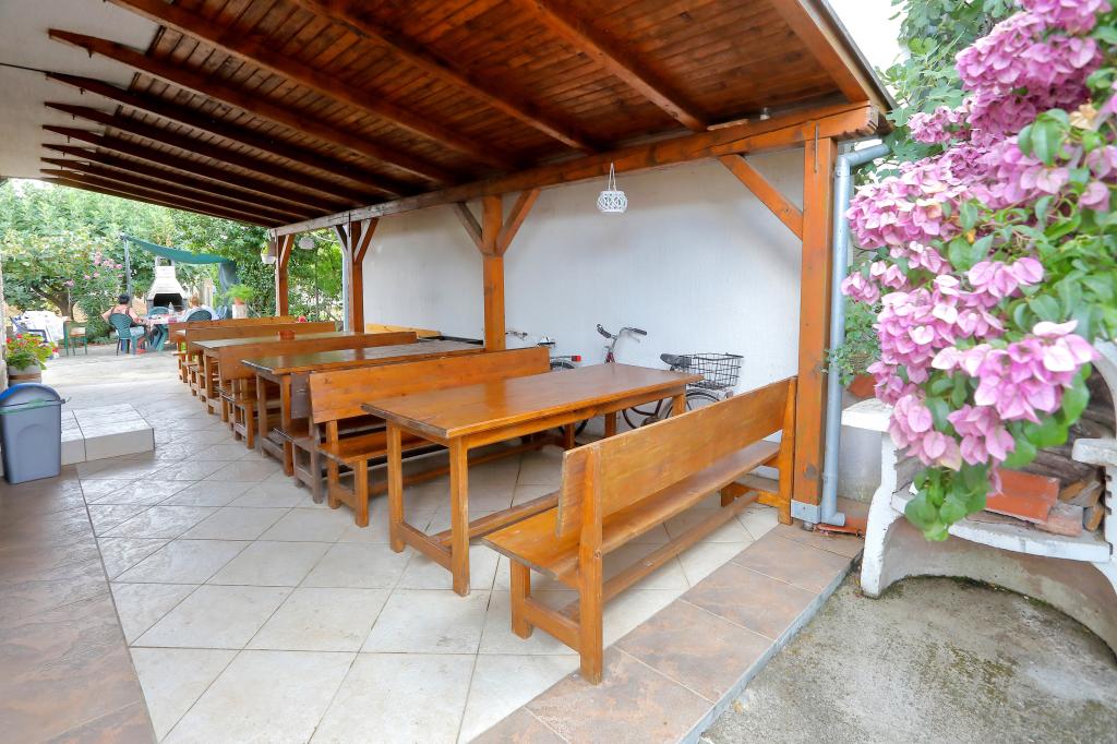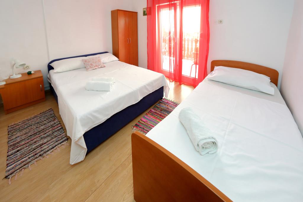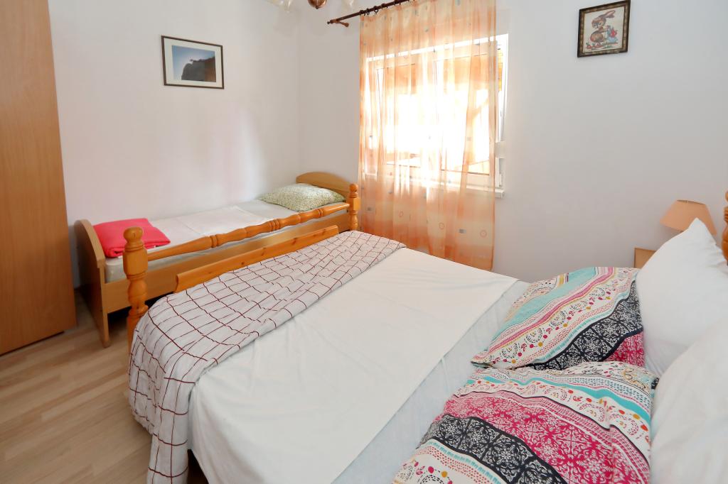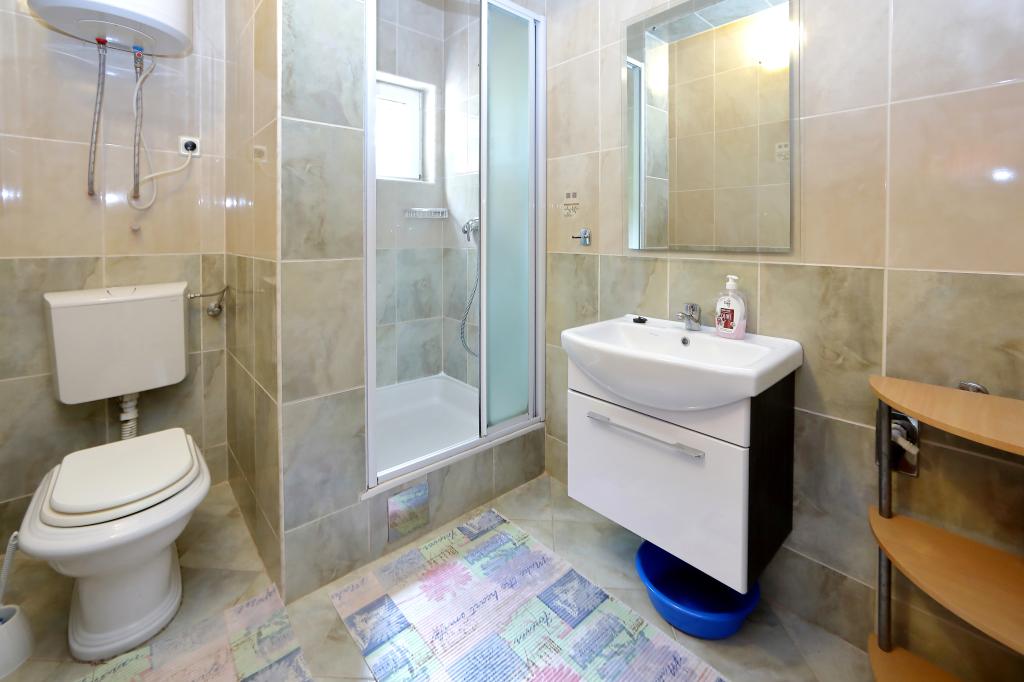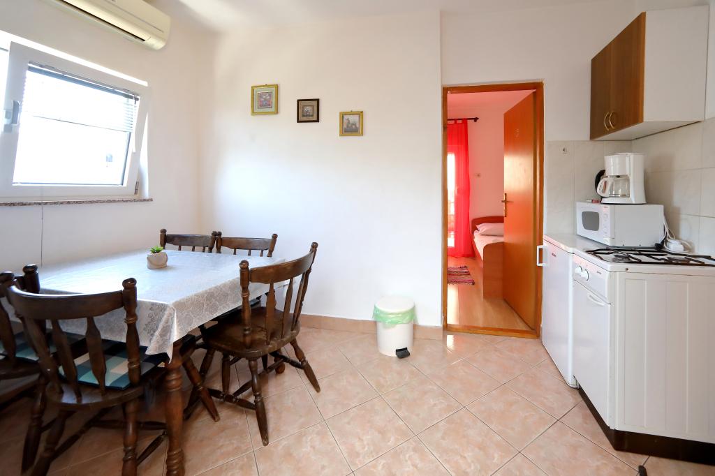 Les appartements comprennent une cuisine avec un coin repas, une salle de bains et 2 chambres. Dans une chambre, il y a un lit double et dans l'autre lit double et simple. Elles sont équipées d'un four micro-ondes, d'une bouilloire, d'un mixeur à tiges, d'un sèche-cheveux, d'un fer à repasser et d'une cafetière. Dans la cour avec parking couvert sont également 3 barbecues pour les invités. En face de ap. est une grande terrasse couverte avec 4 tables. Le premier magasin est à 100 m et les grands centres commerciaux à 4 km (Lidl, Kaufland, Plodine, Konzum, Pevec). Il y a 5 km de Zadar. Il y a une plage de 350 m avec du béton, des cailloux et des forêts, et du sable dans la mer (adaptée aux petits enfants). L'aéroport de Zemunik-Zadar est à 12 km et la gare routière de Zadar est à 5 km. Les appartements sont loin de la première gare routière à 200 m.