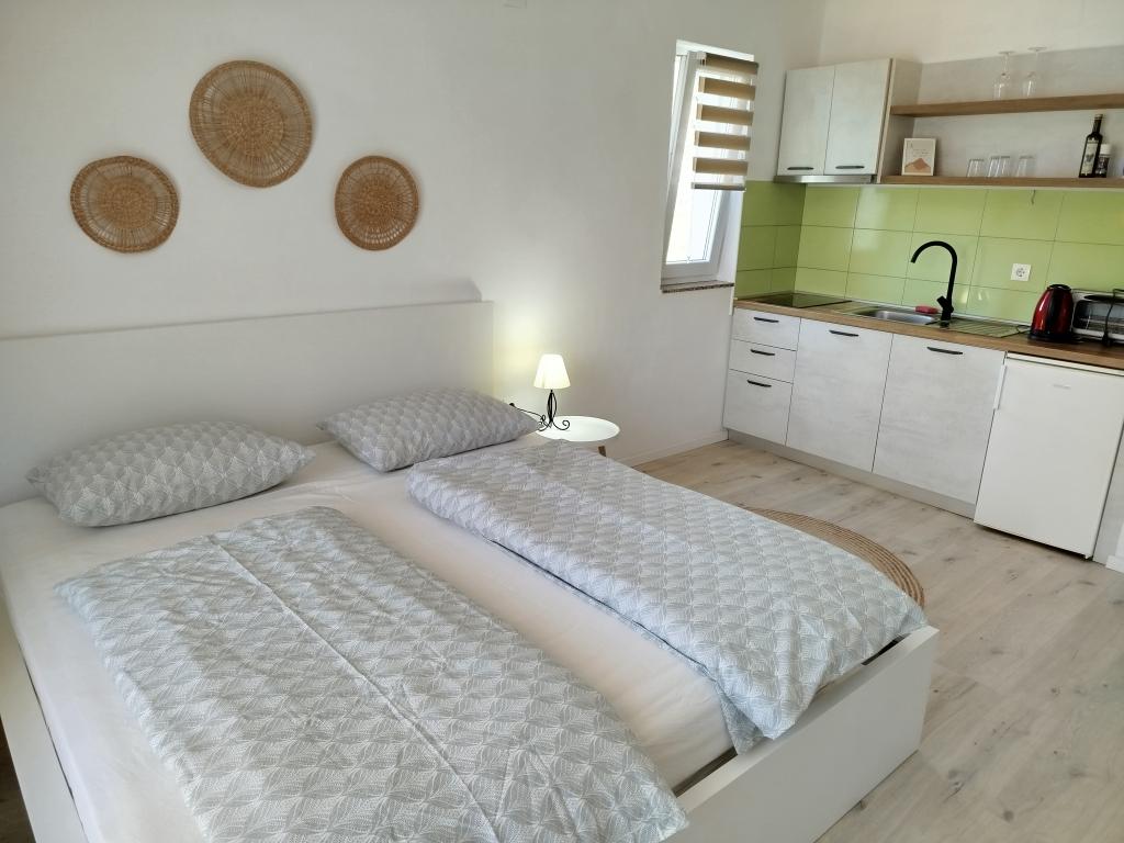 À 50 m de la mer, dans un quartier calme de Bibinje, nous louons 2 appartements d'une chambre (3 + 1) et 1 studio pour 2 personnes, récemment rénové. Chaque appartement se compose d'une pièce séparée, WC, séjour, cuisine, terrasse. Le logement est équipé de climatisation, TV, internet, parking, barbecue ... La plage est de galets, adaptée à toute la famille, l'accès des enfants à la mer est assuré. Sur la plage, il y a un mini-bar avec des boissons et des glaces. Le magasin le plus proche est à 1000 m.