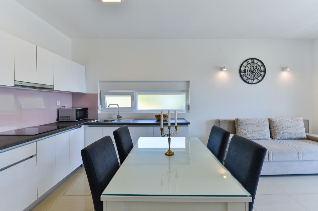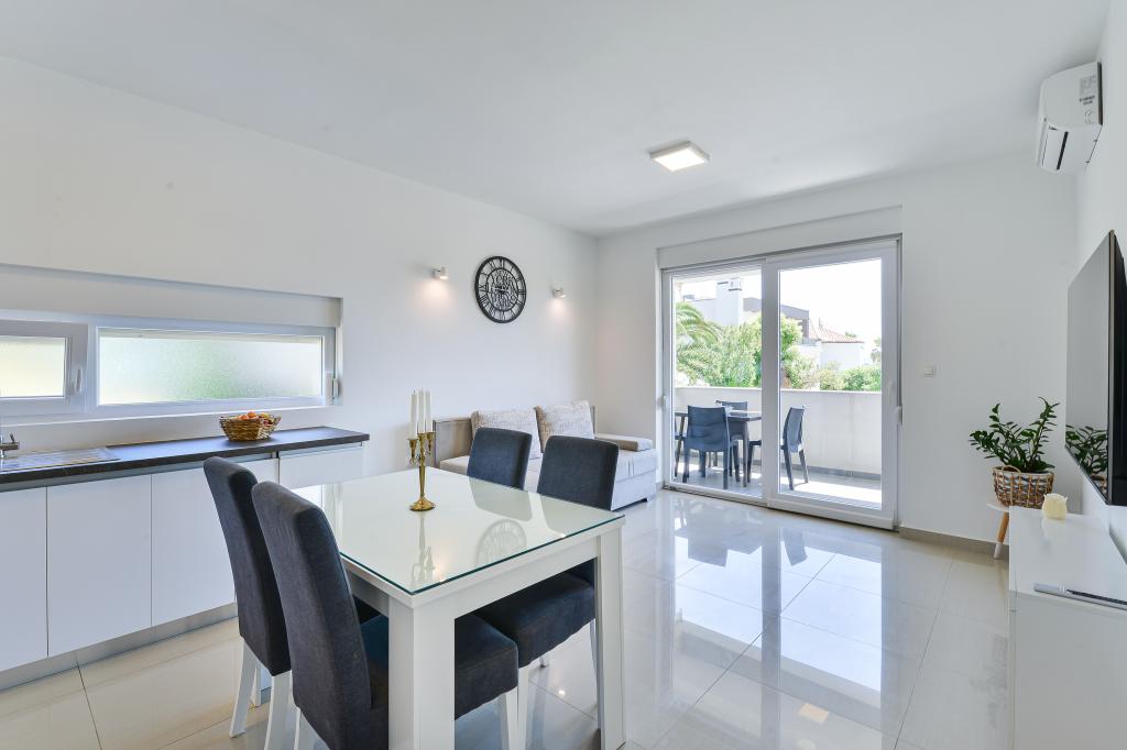 Les appartements Fabian sont situés dans la zone touristique de Bibinje, appelée « Kraj Punta ». La résidence se trouve à 20 mètres de la mer, offrant une vue magnifique sur la mer Adriatique et les îles dalmates. La vieille ville de Zadar, avec ses nombreux grands centres commerciaux, est à 10 minutes en voiture. Dans un rayon de 30 km, vous trouverez trois parcs nationaux : Paklenica, Kornati et Krka. Des excursions vers les parcs nationaux sont également organisées au départ de Bibinje ou de Zadar. Tous les hébergements sont climatisés et disposent d'une salle de bain privative, d'une terrasse, d'une télévision connectée (140 cm de diagonale) avec chaînes satellite, d'une télévision (110 cm de diagonale) et d'une cuisine équipée avec lave-vaisselle. Le restaurant et le magasin les plus proches sont à 150 mètres. Un café-bar et un bar à cocktails sont à 50 mètres. La plage est à 20 mètres. Vous pourrez y louer un jet ski, faire de la planche à voile ou jouer au beach-volley. Le Wi-Fi et le parking sont gratuits. Pour des vacances d'été agréables avec des rayons de soleil et l'odeur de la mer, Appartements Fabian