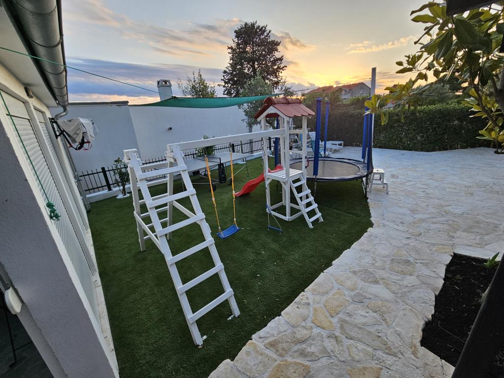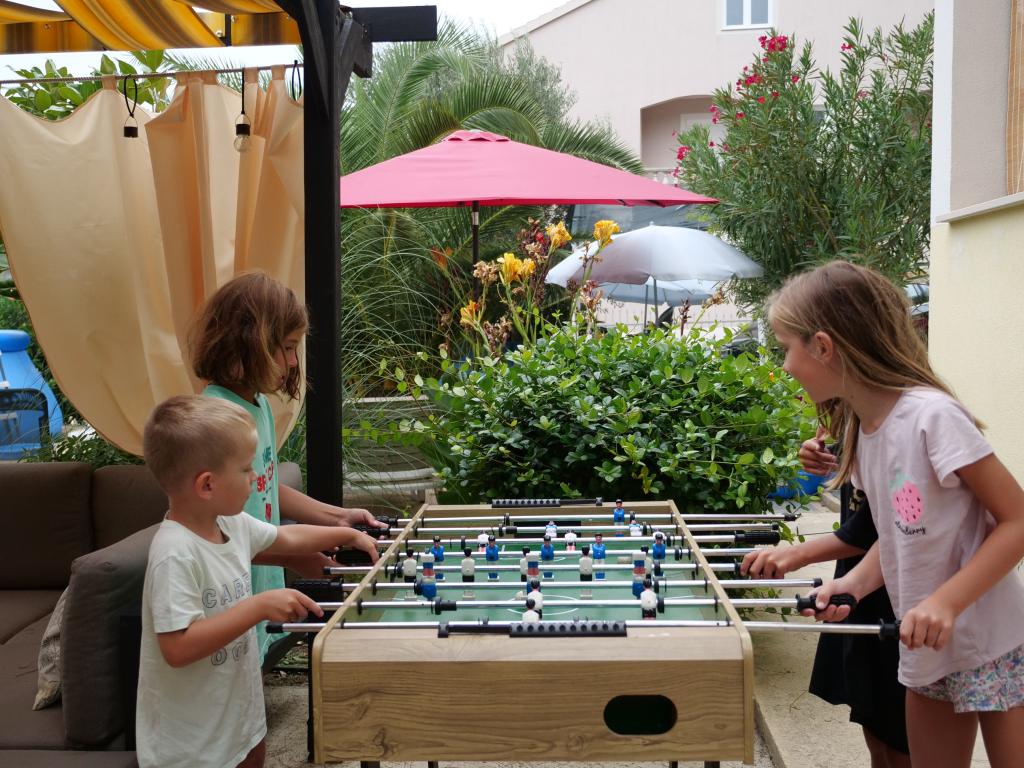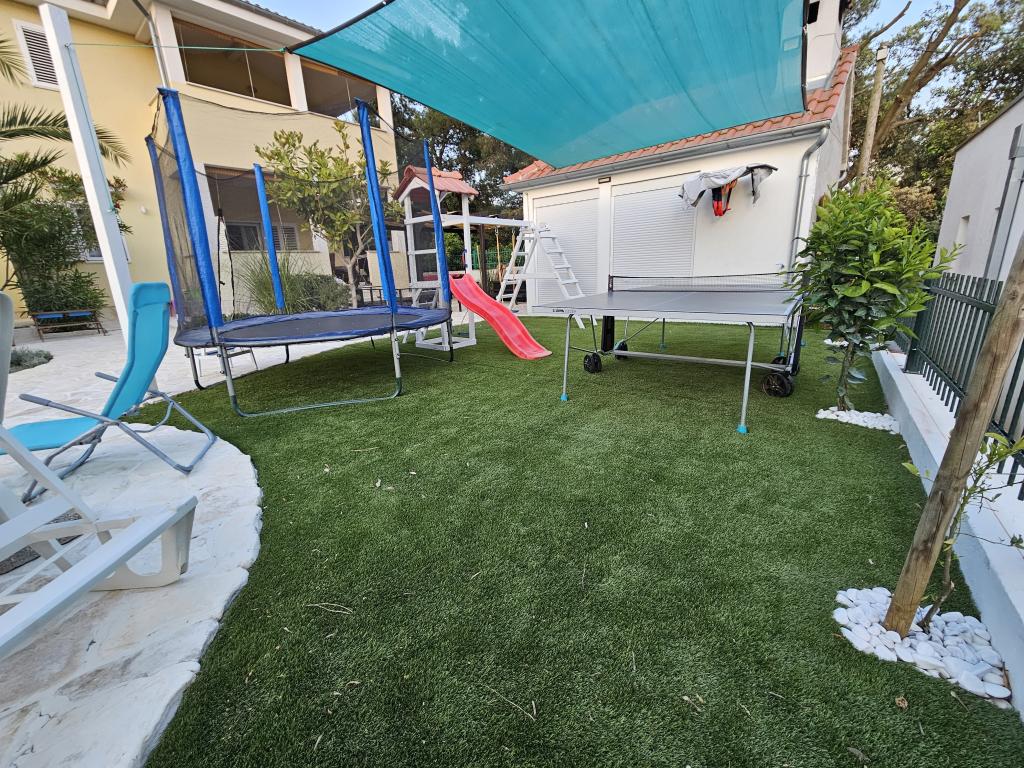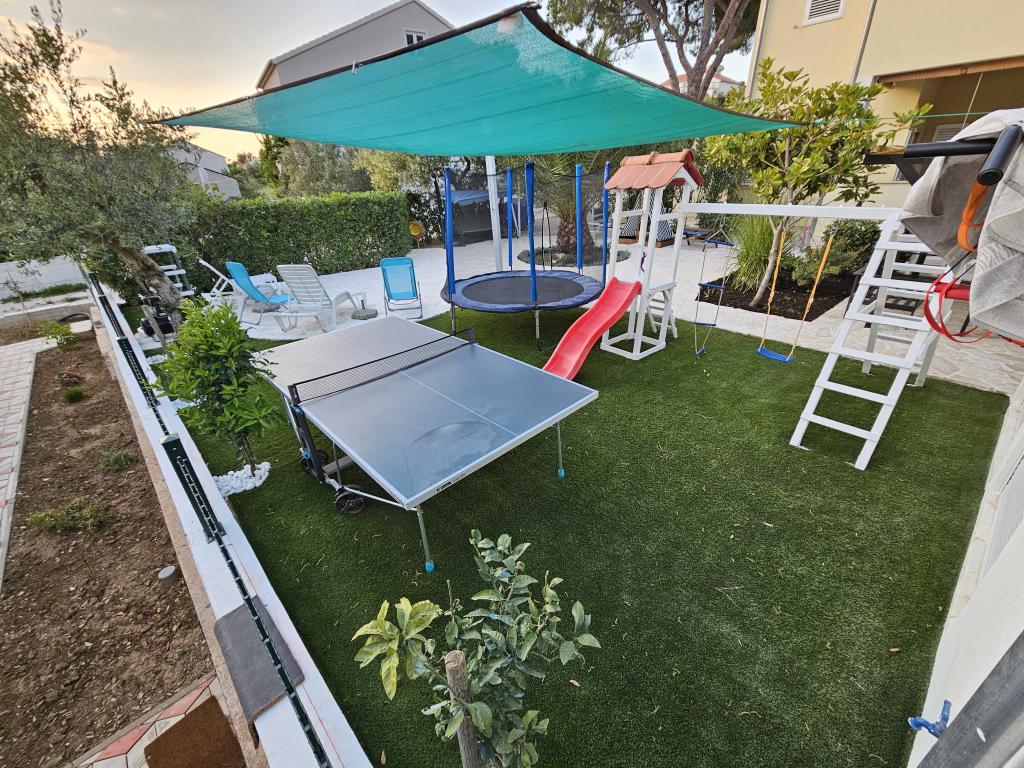 Nos hôtes sont libres d'utiliser la cour et le jardin. Vous pouvez utiliser gratuitement tout ce que vous trouvez dans la cour et le jardin. Il est partagé par tous ceux qui séjournent dans notre maison. Vous trouverez une piscine, des vélos (pour enfants et adultes, avec chaises hautes), un barbecue avec grill (sac, saće, čripnja), une machine à glaçons, une friteuse, 2 réfrigérateurs, un évier, une cuisinière électrique portable, des appareils de sport, des chaises longues avec parasols, une douche solaire, une balançoire de jardin pour 4 personnes et plusieurs piscines (de la plus petite pour bébé à la plus grande), des tables en bois et en plastique pour enfants, une maisonnette avec toboggan, échelle et balançoire, un bac à sable, des fléchettes, du tennis de table, un trampoline, du badminton, une balançoire pour enfants et de nombreux autres jouets pour enfants.