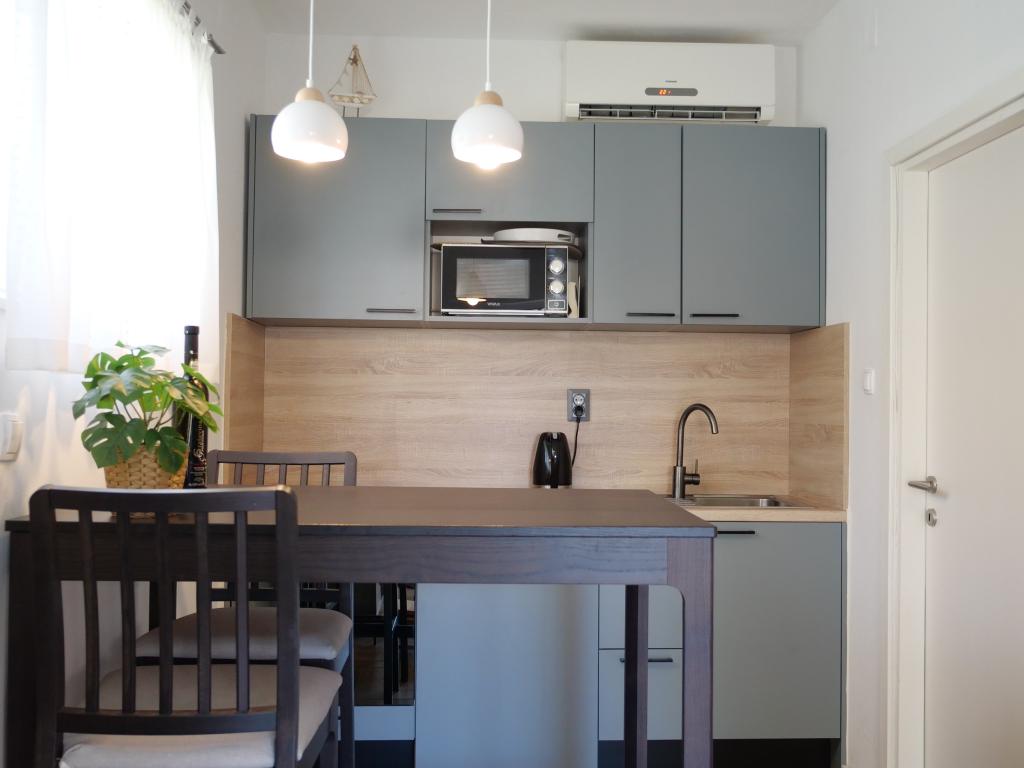 Appartements entièrement équipés avec cour pouvant accueillir jusqu'à 14 personnes. Pour les avis et commentaires des clients, visitez notre site Web. Des avis et commentaires très positifs sont la plus grande garantie du service que nous fournissons. Notre mission est de rendre vos vacances inoubliables et nous sommes entièrement dévoués à vous et à vos besoins pendant vos vacances. Tous nos hôtes peuvent utiliser gratuitement et de manière illimitée toutes les installations de la cour, de la piscine, douche solaire, transats et parasols au tennis de table, badminton, trampoline, baby-foot, billard, fléchettes, barbecue, cuisine extérieure et vélos. Les appartements sont équipés de climatisation, d'un réseau sans fil haut débit, d'une grande télévision LCD SAT avec Netflix. Consultez la liste complète des conditions, règles et règlements intérieurs sur notre site Web. Nous souhaitons que vous les connaissiez afin que rien ne puisse gâcher vos vacances. N'hésitez pas à demander tout ce qui n'est pas assez clair.