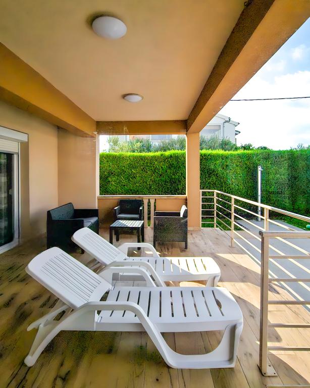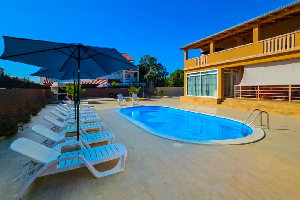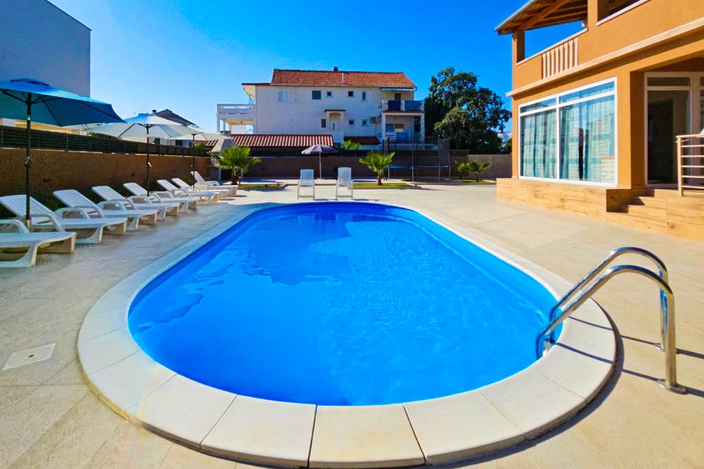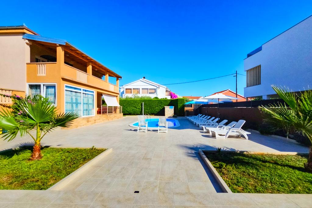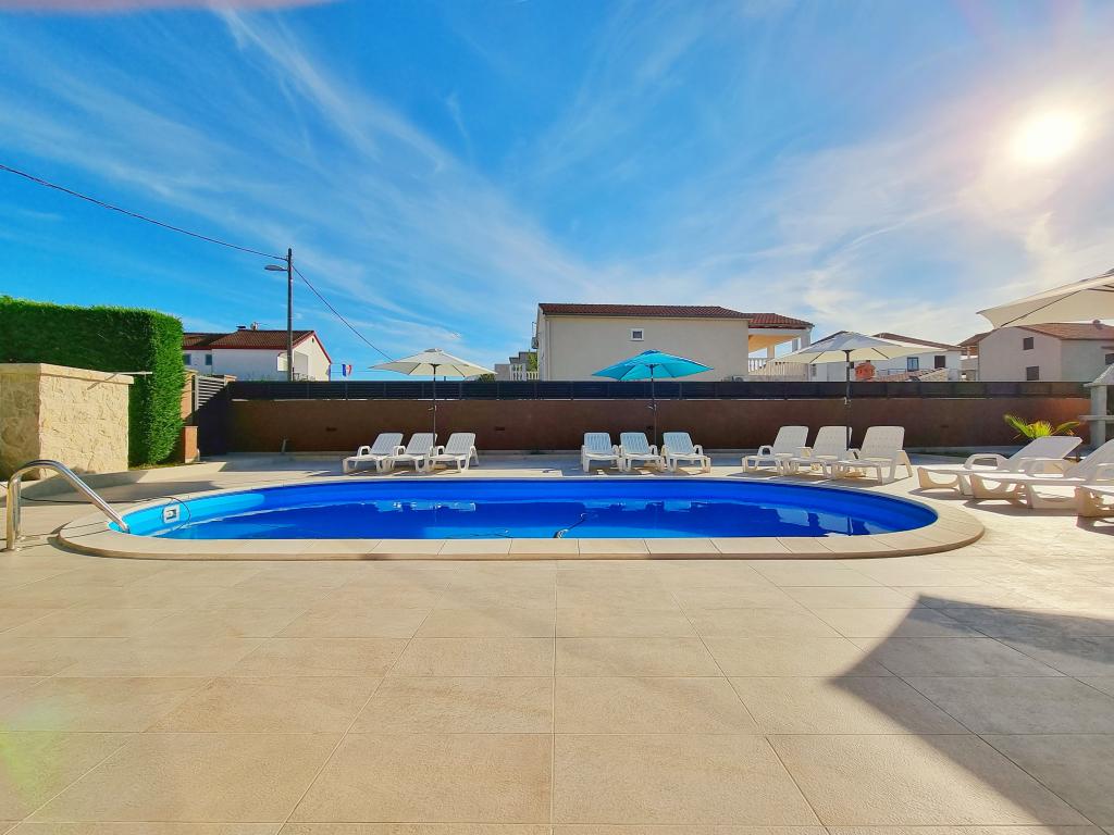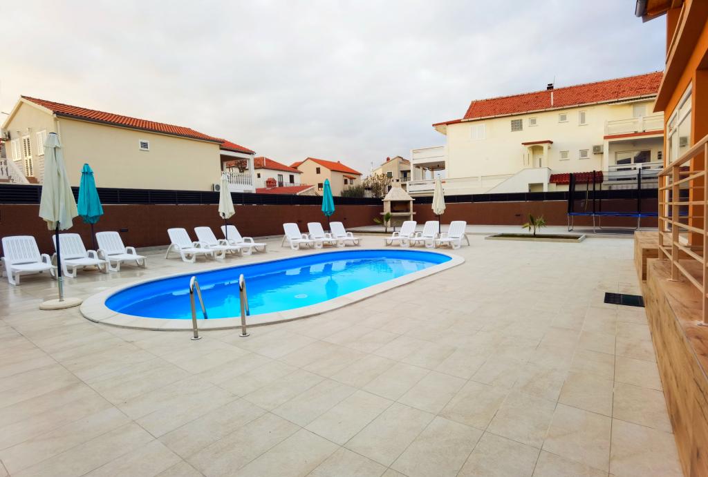 Située à Bibinje, près de Zadar, cette maison est idéale pour des vacances ! A seulement 5 minutes à pied vous séparent des plages, du vieux village avec restaurants et cafés, tandis que la boulangerie, les commerces et les producteurs locaux de fruits et de vins sont à 2 minutes. La maison est clôturée (2 m de haut) pour plus d'intimité et dispose de deux appartements, chacun de 90 m², avec 2 chambres, cuisine, salon, 2 salles de bains et de grandes terrasses. Dans la cour il y a un grand parking, une piscine (8x4 m) et un barbecue à usage commun. Visitez la ville voisine de Zadar, l'Orgue Marin et les parcs nationaux pour des excursions inoubliables ! La piscine est en activité du 15.05.2025 au 15.10.2025.