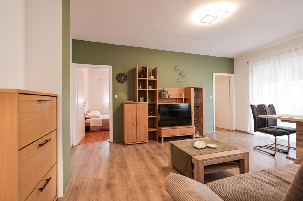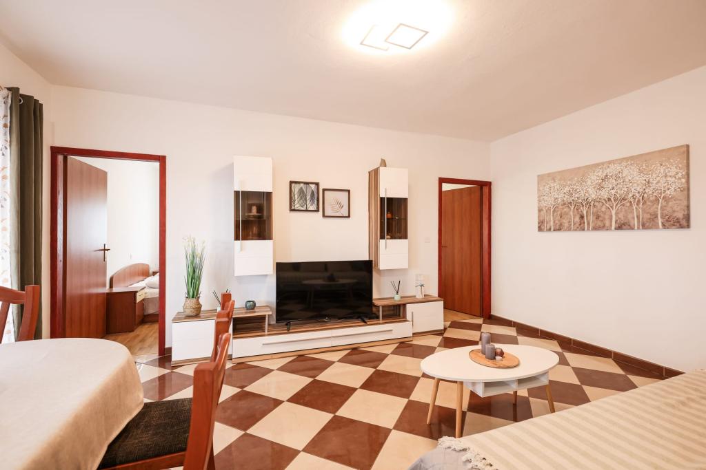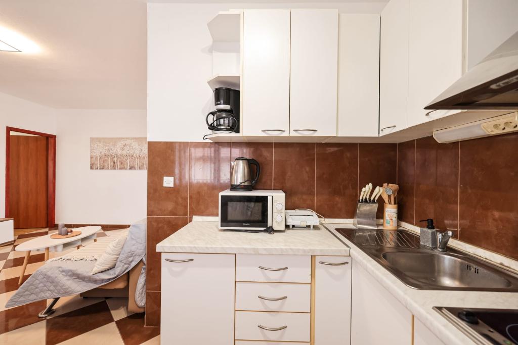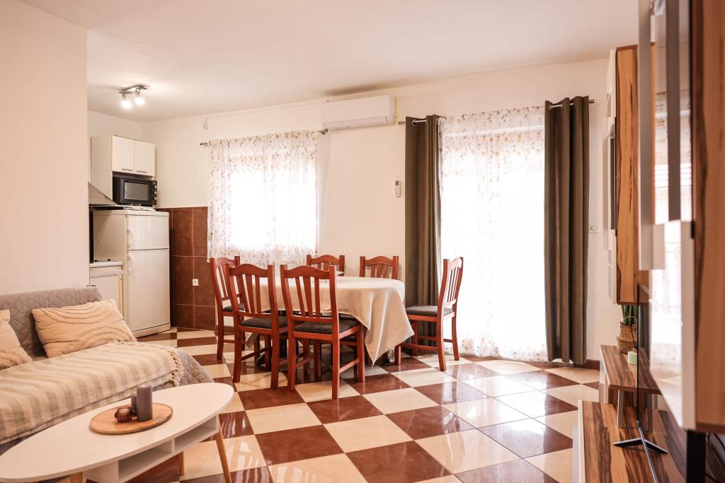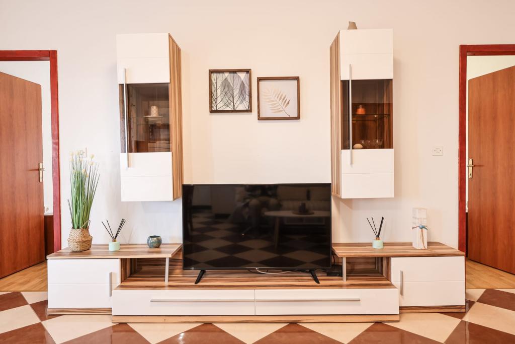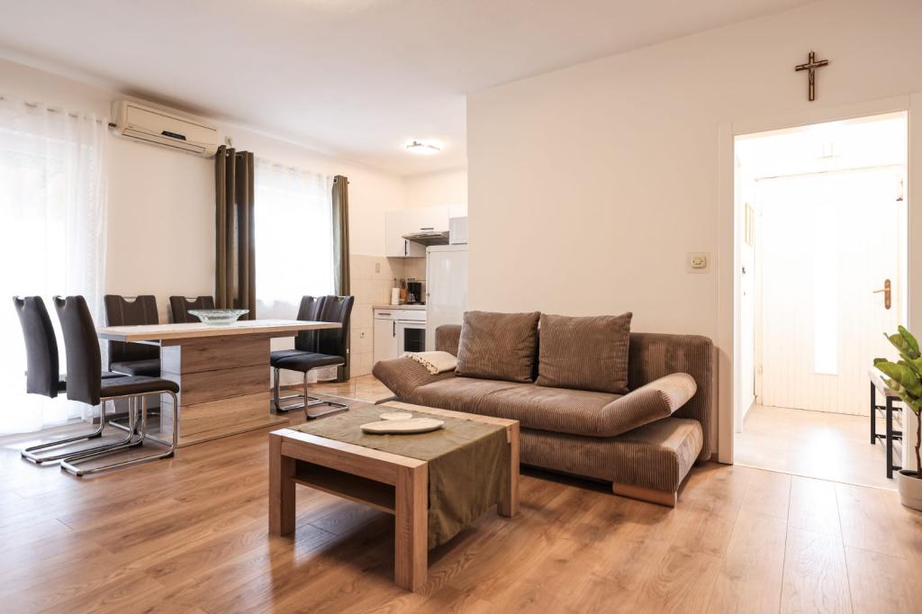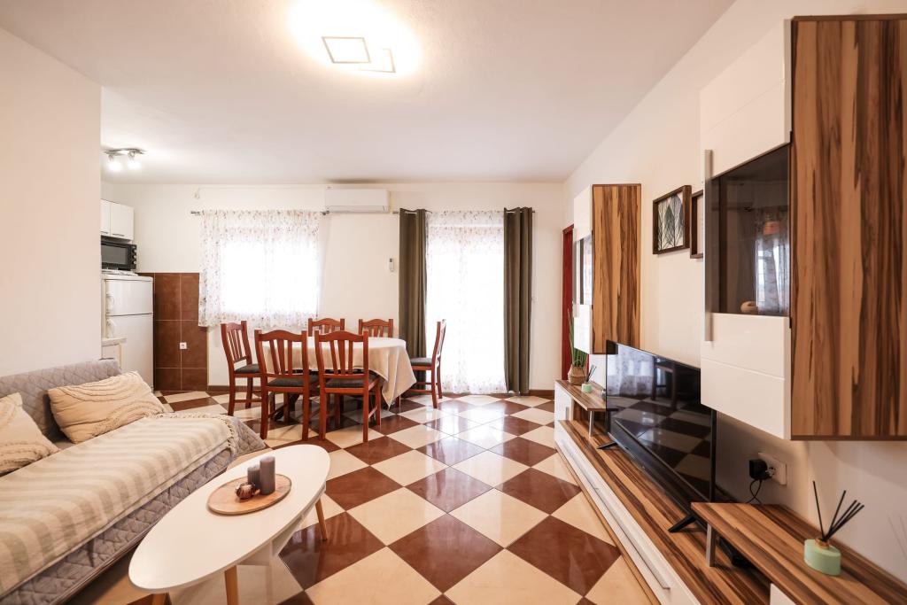 Les appartements entièrement équipés sont situés à proximité immédiate de Zadar, à Bibinje, au troisième rang de la mer. La plage n'est qu'à quelques minutes à pied. Le centre-ville et toutes les commodités associées se trouvent à 500 mètres, tandis que la gare routière principale et l'aéroport sont à environ 5 km. Il y a également 4 parcs nationaux à proximité, accessibles en transport organisé ou en voiture. Bibinje est un endroit avec une offre variée. Des cafés et des restaurants proposant une riche offre gastronomique s'étendent sur toute la côte. De plus, des événements culturels ont lieu presque tous les jours dans la ville, des festivals de pêche aux concerts divers.