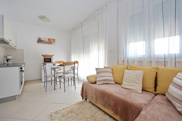 Taxe de sejour est inclus dans le prix.Studio très bien équipé ! L'appartement est propre, l'intérieur est moderne et confortable. Grande terrasse avec vue sur la marina. L'appartement est très bien situé, à quelques minutes de la plage, des commerces et... Les photos sur le site Web montrent exactement à quoi cela ressemble réellement. C'est fortement recommandé !!!