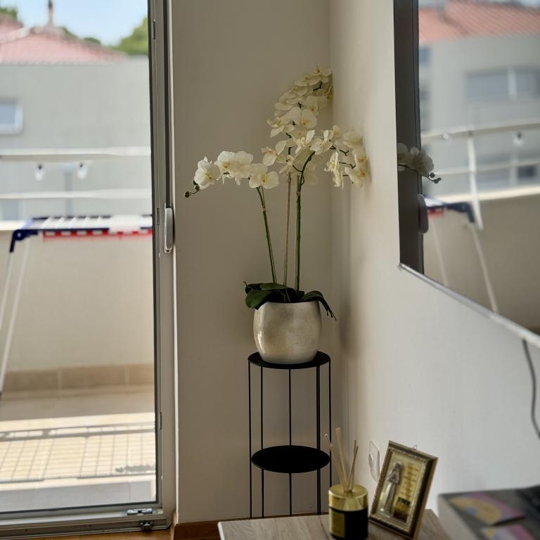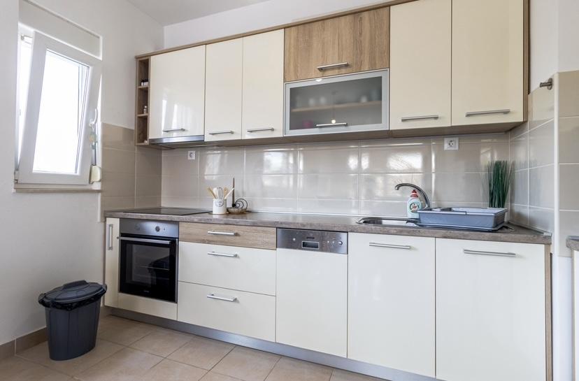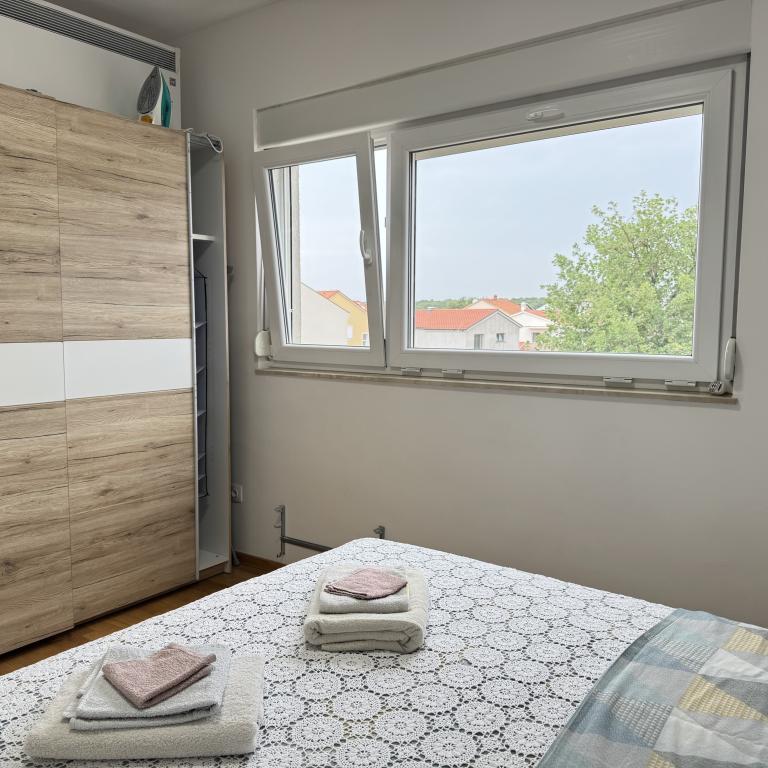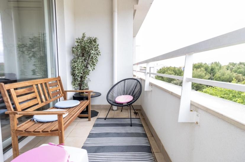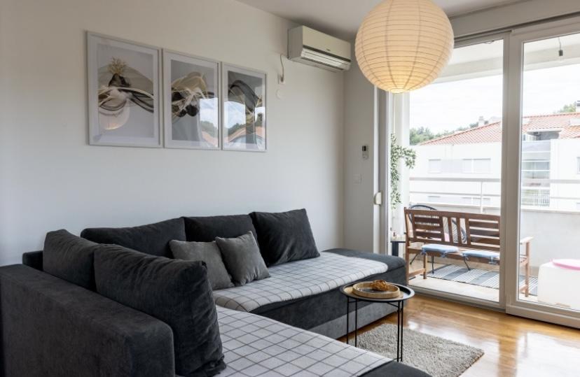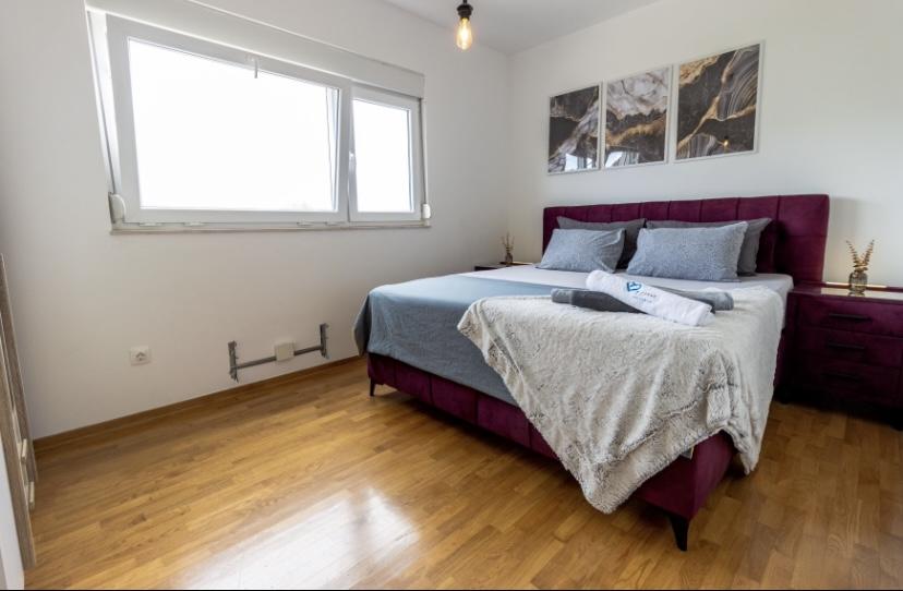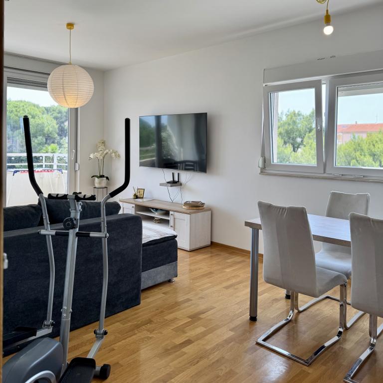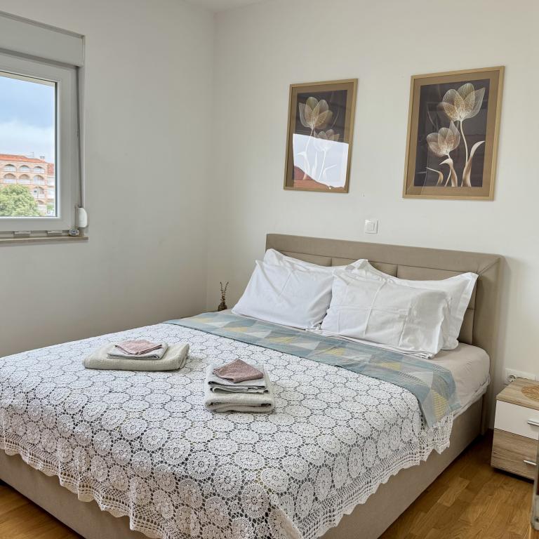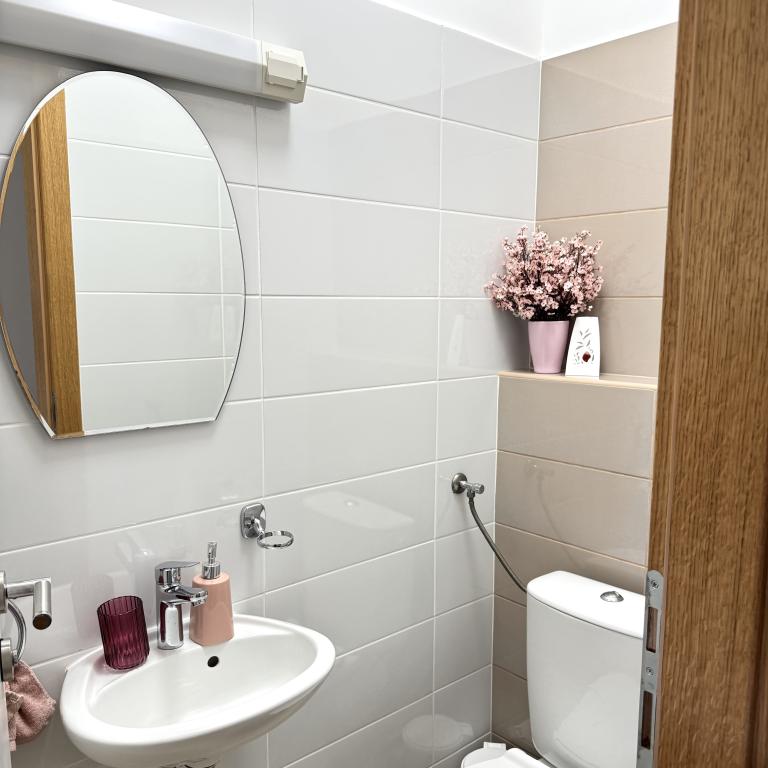 Le bel appartement comprend 2 chambres spacieuses, une cuisine entièrement équipée, un salon confortable, une salle de bain moderne et un balcon spacieux pour 4 personnes. Situé au deuxième étage, à seulement 500m de la côte, cet appartement de luxe offre confort et élégance. Cet appartement moderne situé au deuxième étage a tout ce dont vous avez besoin pour un séjour confortable : un design élégant, un mobilier de qualité et une cuisine entièrement équipée. Profitez d'être près de la mer, et après la plage, détendez-vous sur le balcon spacieux avec une belle vue...