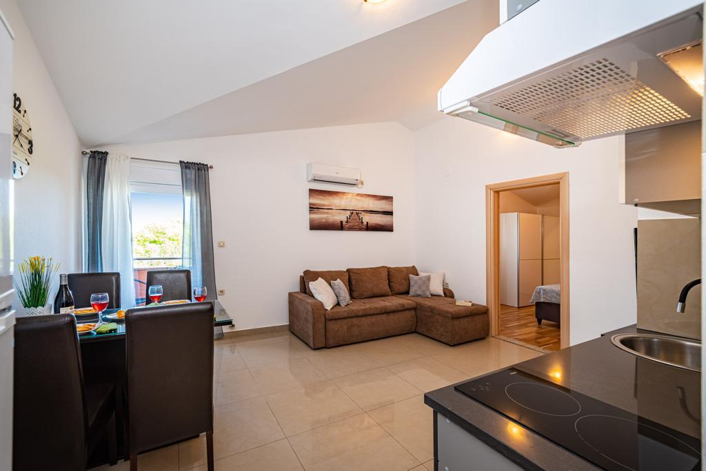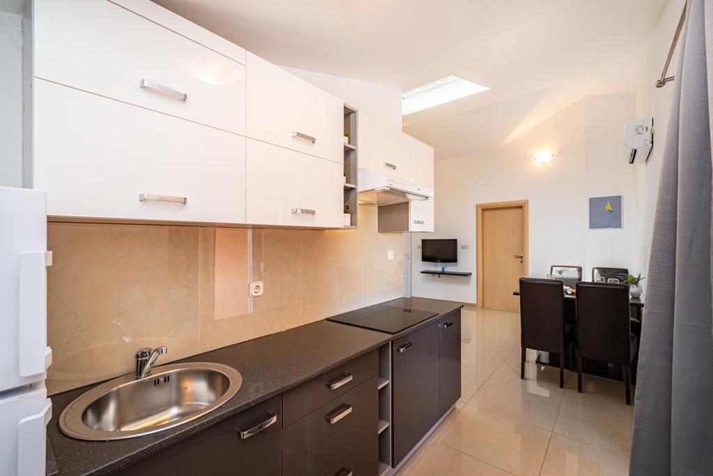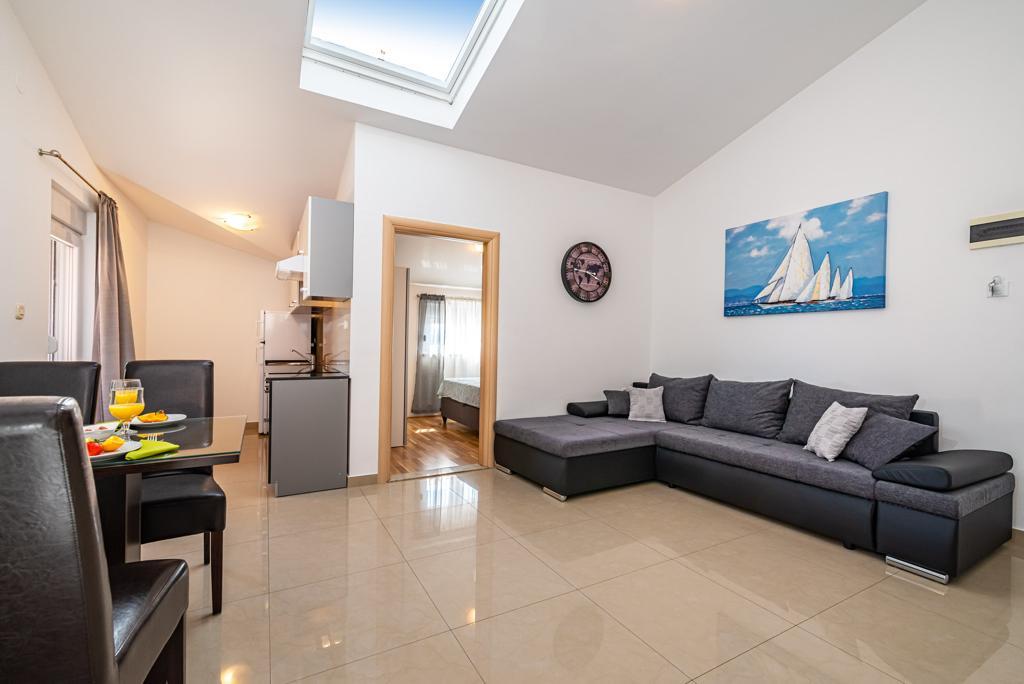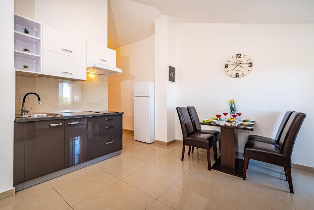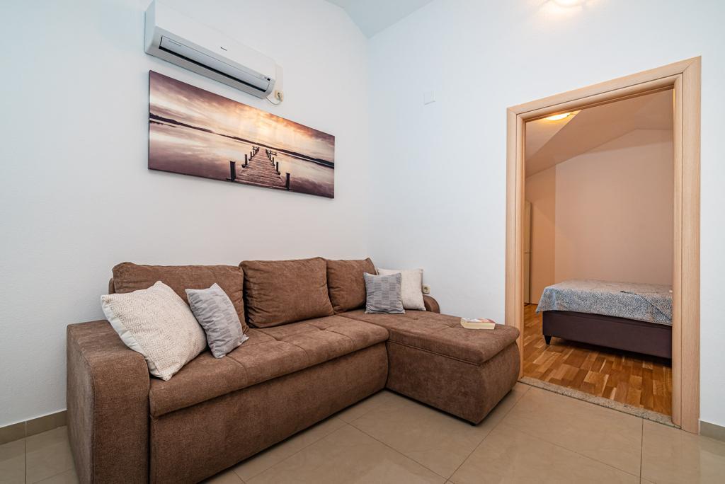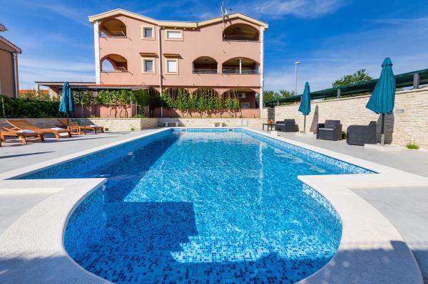 Je loue 5 appartements d'une chambre avec piscine, les appartements sont situés dans un quartier calme de Biograd. Chaque appartement dispose d'une cuisine entièrement équipée (avec vaisselle), d'une chambre avec un lit double (linge de lit), d'un séjour avec un grand canapé-lit (pour deux personnes), un lit bébé, un lit simple. (TV, satellite), WC, balcon, barbecue, parking, climatisation. La piscine (10 × 5m) a nage à contre-courant, hydromassage et éclairage de glace. L'installation est sous vidéosurveillance, les appartements sont destinés exclusivement aux vacances car ils sont situés dans une maison familiale donc ce n'est pas pour s'amuser et faire la fête. Chaque appartement peut accueillir 4 à 5 personnes. La ville est idéale pour les enfants, petits et grands compte tenu de la diversité de l'offre de divertissement.