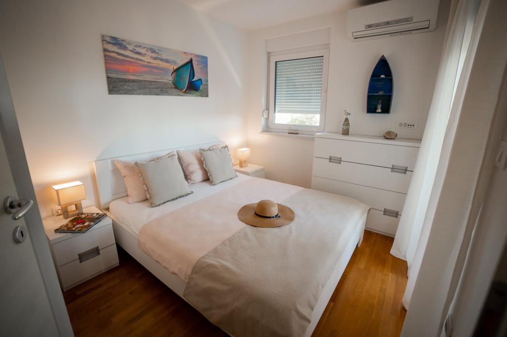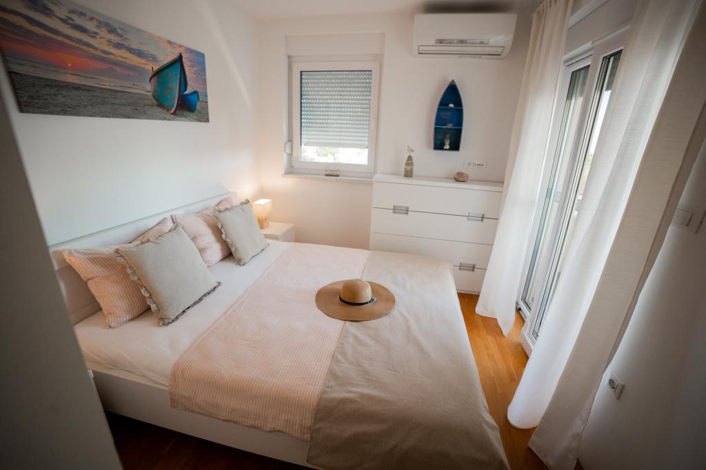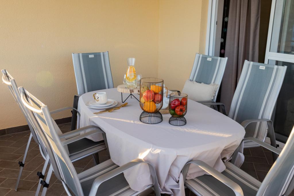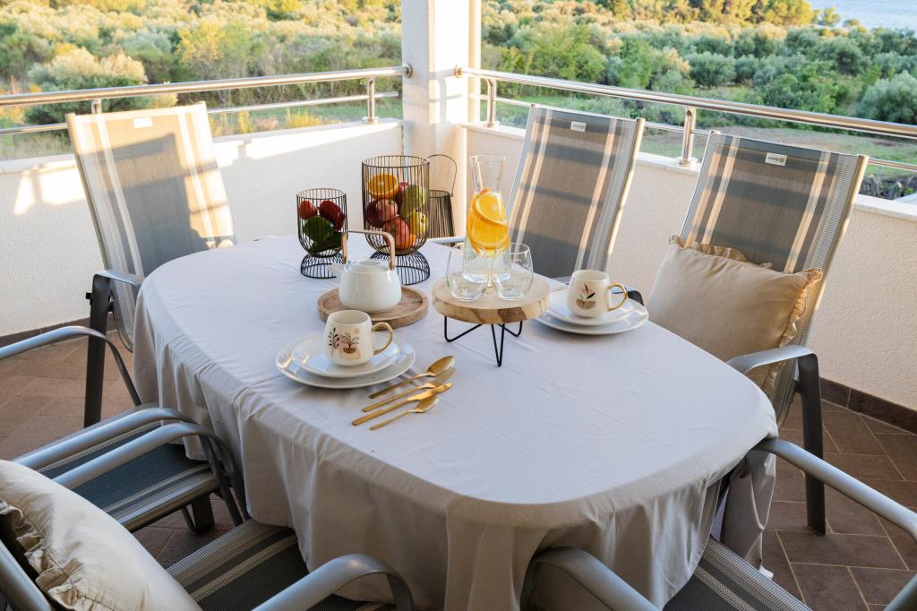 Les propriétaires sont excellents, sympathiques et aimables. Nous sommes arrivés à 8 heures du matin à cause de la foule. Le propriétaire nous a immédiatement installés dans l'appartement, peu importe ce qui était indiqué, après 10 ou 14 heures. Le départ était prévu à 10 heures, mais nous avons pu profiter de la journée pour nager et éviter la foule, car nous avons pu laisser la voiture chez eux. L'appartement est très joliment décoré et dispose de tout le nécessaire : sèche-cheveux, lave-linge, cuisine également très bien équipée, on s'y sent comme à la maison. La terrasse est très agréable avec vue sur la mer. Les lits sont confortables et il y a des moustiquaires à chaque fenêtre, ce qui évite les problèmes de moustiques. Nous avons passé un très bon séjour et je le recommande vivement. Merci aux propriétaires.