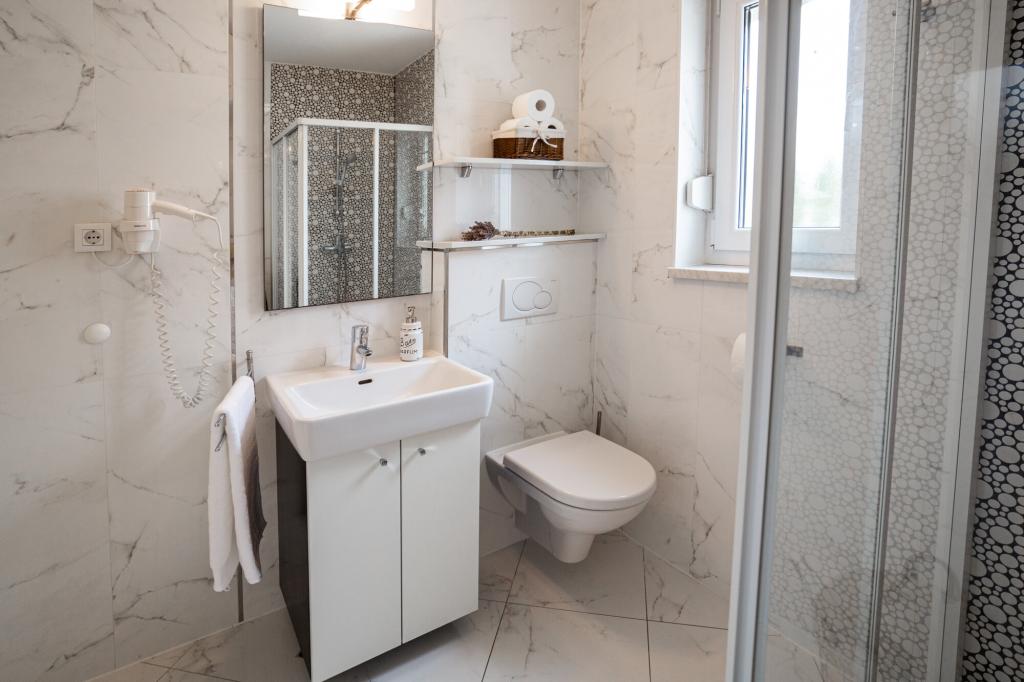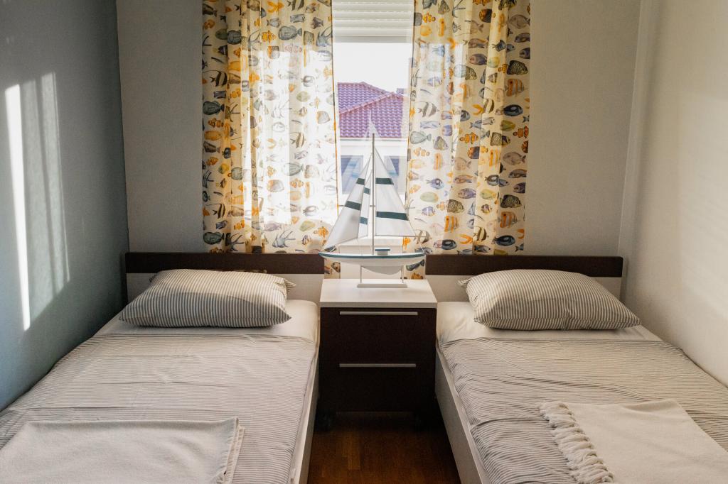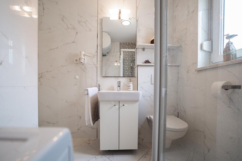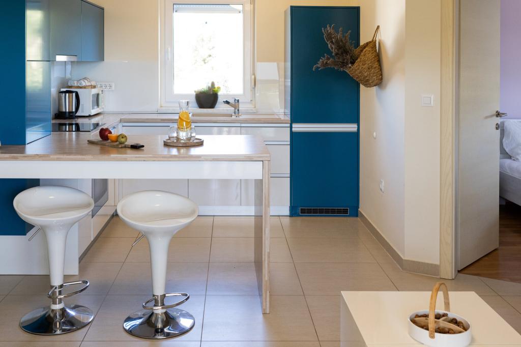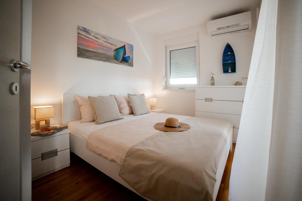 Les propriétaires sont excellents, sympathiques et aimables. Nous sommes arrivés à 8 heures du matin à cause de la foule. Le propriétaire nous a immédiatement installés dans l'appartement, peu importe ce qui était indiqué, après 10 ou 14 heures. Le départ était prévu à 10 heures, mais nous avons pu profiter de la journée pour nager et éviter la foule, car nous avons pu laisser la voiture chez eux. L'appartement est très joliment décoré et dispose de tout le nécessaire : sèche-cheveux, lave-linge, cuisine également très bien équipée, on s'y sent comme à la maison. La terrasse est très agréable avec vue sur la mer. Les lits sont confortables et il y a des moustiquaires à chaque fenêtre, ce qui évite les problèmes de moustiques. Nous avons passé un très bon séjour et je le recommande vivement. Merci aux propriétaires.