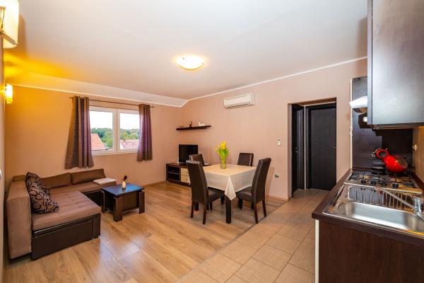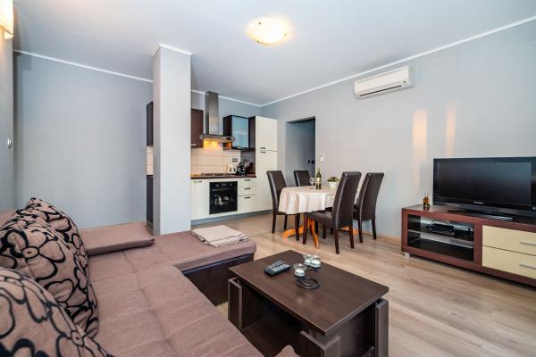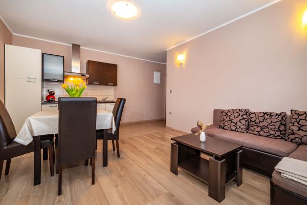 Appartements récemment rénovés, modernes et climatisés, situés à proximité du centre commercial Bure, dans un quartier calme de la ville, à côté de l'aire de jeux. La plage et le centre-ville sont à environ 900 m, soit 10 à 15 minutes à pied. La propriété dispose d'un barbecue extérieur (cheminée). L'appartement 6 2 est situé au rez-de-chaussée et a été entièrement rénové en 2019.