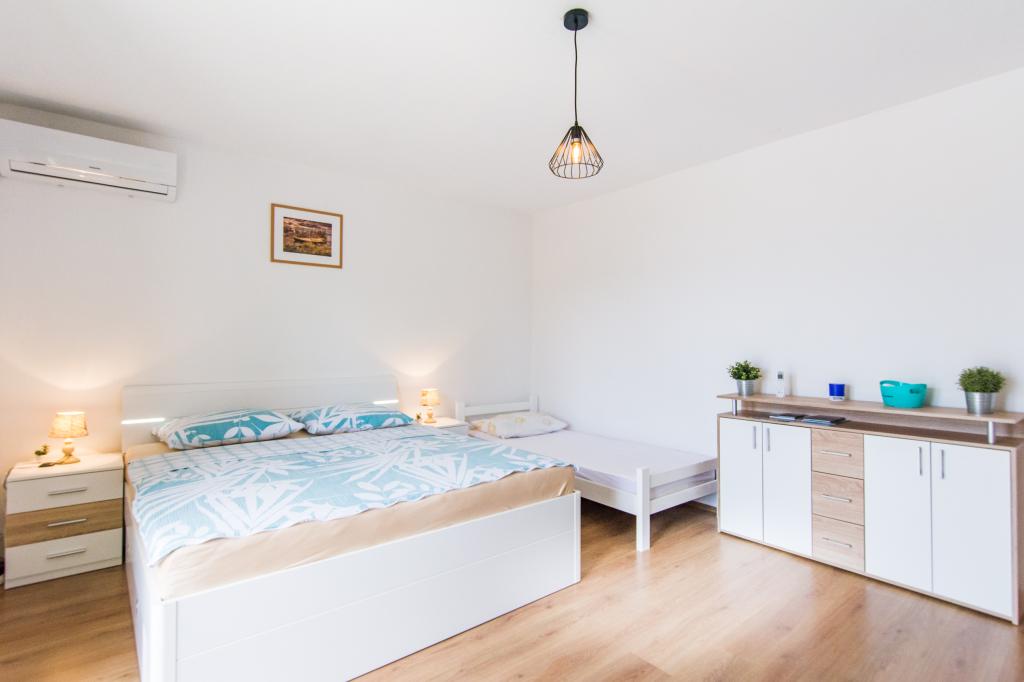 Bienvenue dans les appartements et chambres RoLo. La plage de Bošana est située juste en face de la maison. Sur la plage elle-même, nos clients peuvent pratiquer des activités sportives, et il existe également des installations pour les enfants - aire de jeux pour enfants, parc aquatique, sports nautiques. Si vous souhaitez vous détendre, boire ou manger quelque chose, vous pouvez le faire dans les cafés, restaurants ou fast-foods à proximité. Le parking est juste en face de la maison et dans la cour de la maison, à côté du jardin, il y a aussi un barbecue, que nos hôtes peuvent utiliser librement. Nous recommandons nos appartements et chambres aux familles, aux couples et aux célibataires. Le prix de l'hébergement comprend la taxe de séjour, la place de parking, l'utilisation de la climatisation, l'utilisation de l'Internet sans fil et le linge de lit. Tous nos logements disposent de leur propre salle de bain avec toilettes. Puisque nous sommes situés à proximité du centre-ville, tout ce dont vous avez besoin se trouve à proximité de notre logement et vous devez marcher jusqu'au centre en moins de 10 minutes.