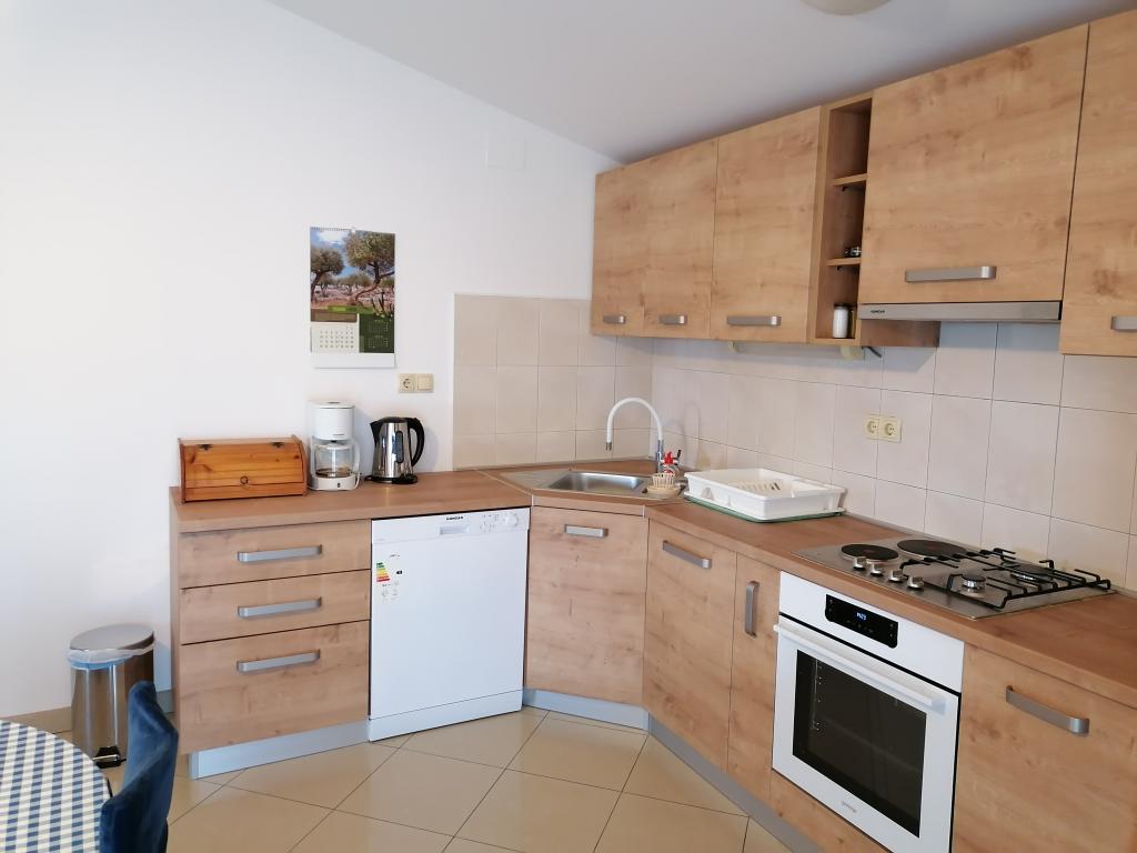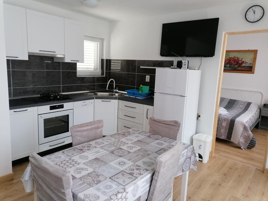L'appartement est situé en centre-ville, à proximité de la plage de Dražice, des commerces et de la gare routière. L'appartement A4+2 comprend deux chambres (lits 180x190 et 160x200), un salon avec canapé-lit 140x200, une salle de bain et des toilettes. Situé au deuxième étage, il mesure 115 m² et dispose de deux balcons offrant une vue sur l'île de Pašman. Parking dans la cour, Wi-Fi, télévision, climatisation, lave-vaisselle, lave-linge et moustiquaires. L'appartement A2+1 comprend une chambre (lits 160x200), une salle de bain et une cuisine avec salon (canapé 120x190). L'appartement dispose de la climatisation, d'un lave-linge, d'un lave-vaisselle, de moustiquaires, d'une télévision et d'un parking dans la cour. La terrasse est devant l'appartement.