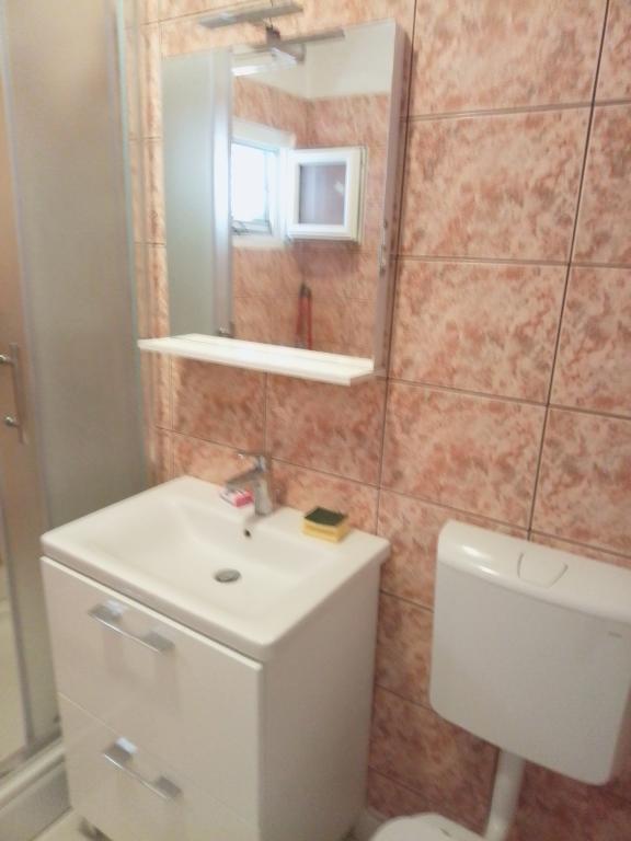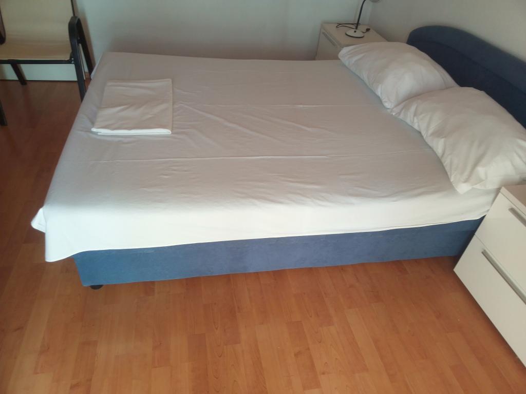 Les appartements Jadran sont situés dans une résidence calme à Biograd na Moru Kumenat, à l'écart du centre-ville, à côté d'un camping touristique entouré de pinèdes. Le centre-ville est accessible en 10 minutes à pied par la promenade maritime. La plage du même nom, Kumenat, est à environ 100 mètres, et la deuxième plage de sable, Soline, à environ 300 mètres. Les appartements sont situés aux deuxième et troisième étages d'une maison familiale avec vue sur la mer et les îles. D'une superficie totale de 65 m², chaque appartement comprend deux chambres séparées avec lits, des lits d'appoint et une autre chambre avec deux lits, une cuisine-séjour, un couloir, une salle de bain et deux terrasses. Chaque appartement dispose de deux chambres et d'un lit d'appoint, ce qui permet d'accueillir jusqu'à 5 personnes. Deux terrasses à l'avant et à l'arrière de la maison vous permettront de vous détendre au son du chant des oiseaux et d'admirer la vue sur la mer et les îles, ainsi que les couchers de soleil romantiques. Le nombre de nuitées dépend du choix des hôtes. La liste des tarifs est disponible en cliquant sur le bouton « Liste des tarifs ». Bienvenue !