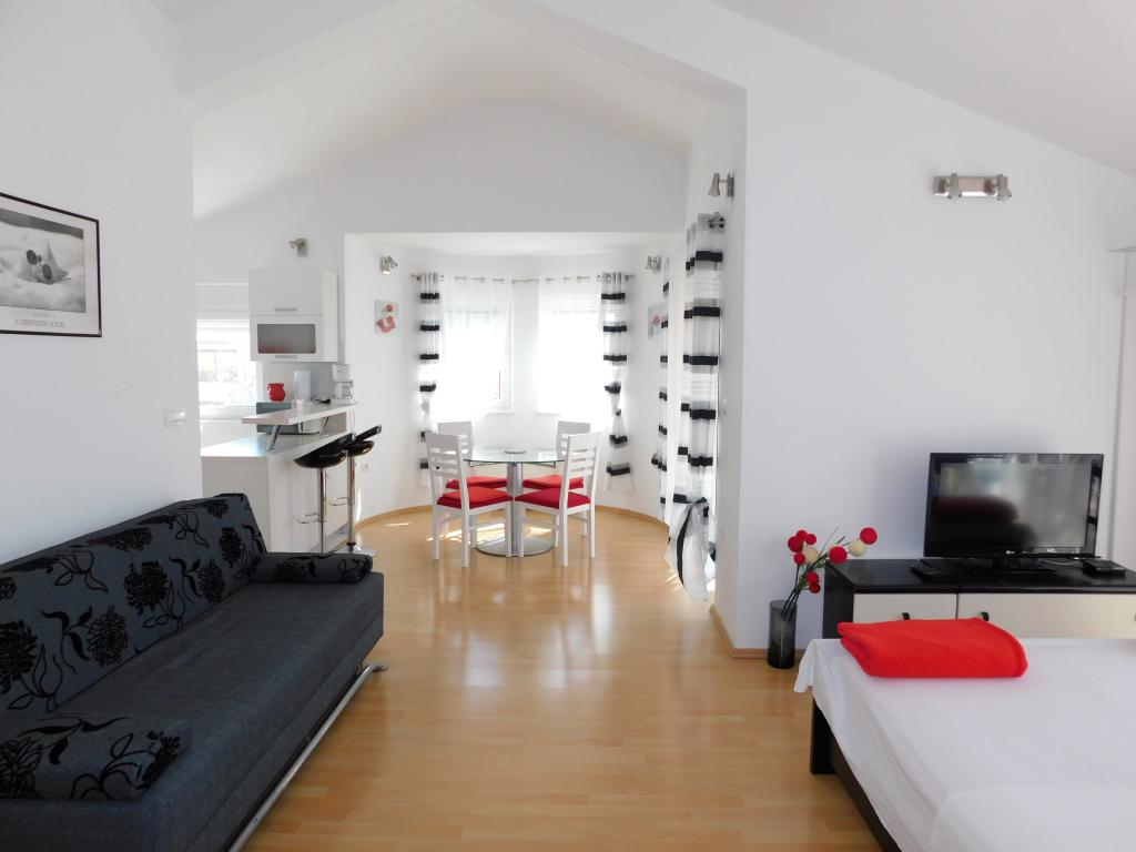 Bravo à la famille Jurišić, et particulièrement à Mme Vanesa, qui nous a chaleureusement accueillis et était toujours disponible pour toute question. L'appartement dans lequel nous avons séjourné est très moderne et confortablement meublé. Un gros plus pour l'appartement sont deux salles de bains avec douches. La cuisine est équipée de tout le nécessaire pour une famille de quatre personnes. Les lits sont confortables et il y a suffisamment d'armoires pour ranger les choses. Proche de la plage et du centre lui-même. Nous n'avons pas utilisé la voiture pendant cinq jours. Nos enfants de 11 et 7 ans ont profité de toutes les installations qu'offre le lieu (toboggans, parc d'attractions pour enfants). Nous recommandons vivement cette ville et l'appartement où nous avons séjourné.
