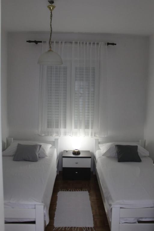 Les appartements sont situés dans un quartier calme de Biograd, juste à côté de la mer, à 20 m de la mer et de la plage de Bosana. A 5 minutes à pied du centre où vous trouverez tout ce dont vous pourriez avoir besoin (pharmacie, hôpital, gare routière, cafés, restaurants, centre commercial...) Climatisation, WIFI, parking, TV sont disponibles (inclus dans le prix). Arrivées (check in) à 14h, départs (check out) jusqu'à 10h. Un versement de 200 euros est demandé pour la réservation.