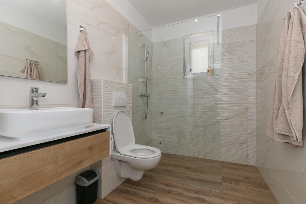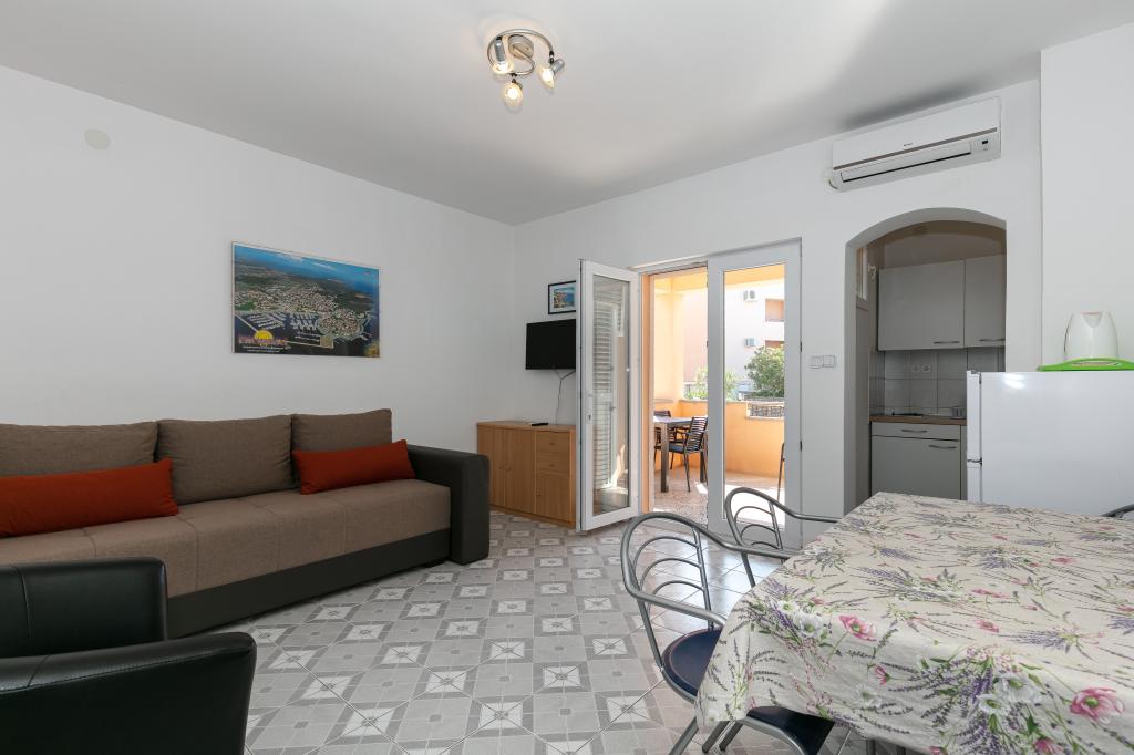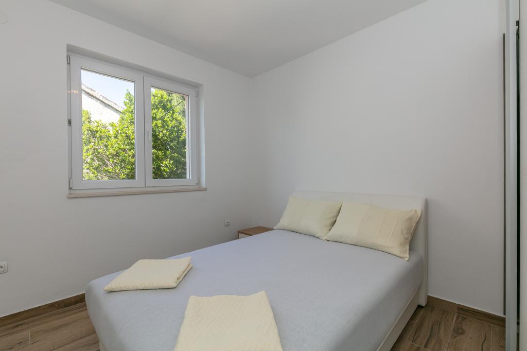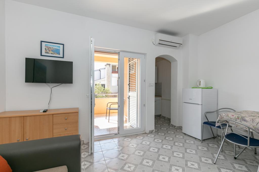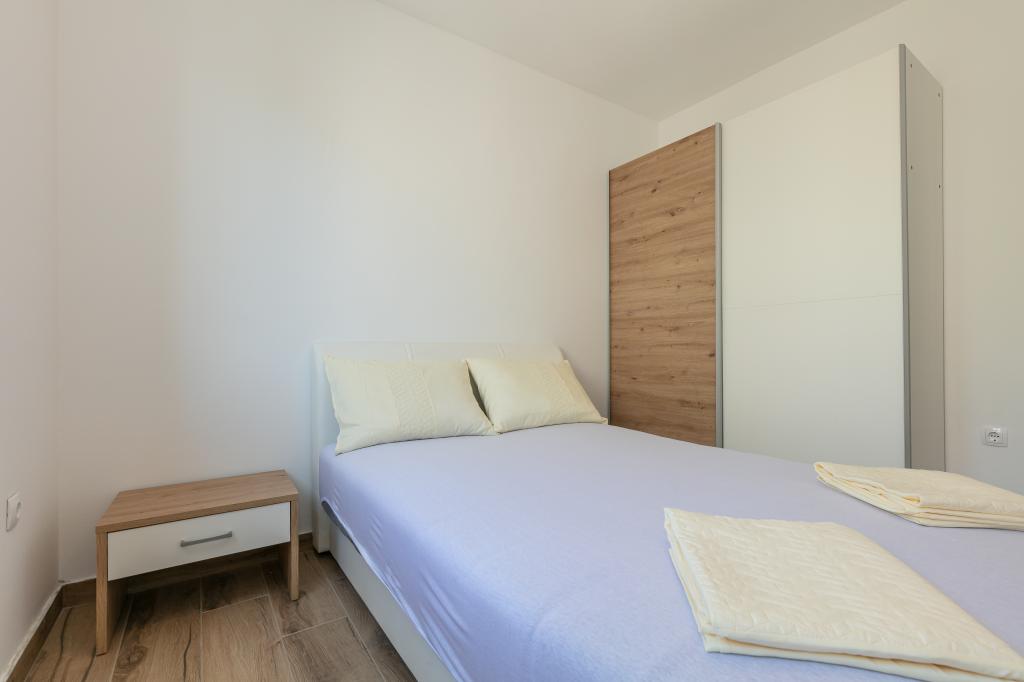 Ma note est de 8/10. Le village est calme et la plage est relativement proche. L'appartement est soigné, propre et assez spacieux. La cuisine est trop petite et la cuisinière électrique est en très mauvais état, donc il nous a fallu deux fois plus de temps pour préparer le déjeuner que si nous avions du gaz. La terrasse de l'appartement est superbe, assez grande et l'après-midi tout le temps à l'ombre. L'appartement ne disposait pas d'étendoir pour sécher le linge et les serviettes, mais seulement une petite rallonge sur le mur de la terrasse, ce qui est insuffisant. Nous avons reçu 4 petites serviettes.