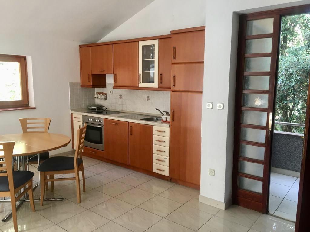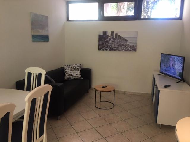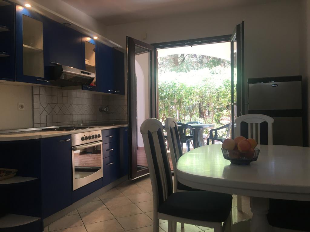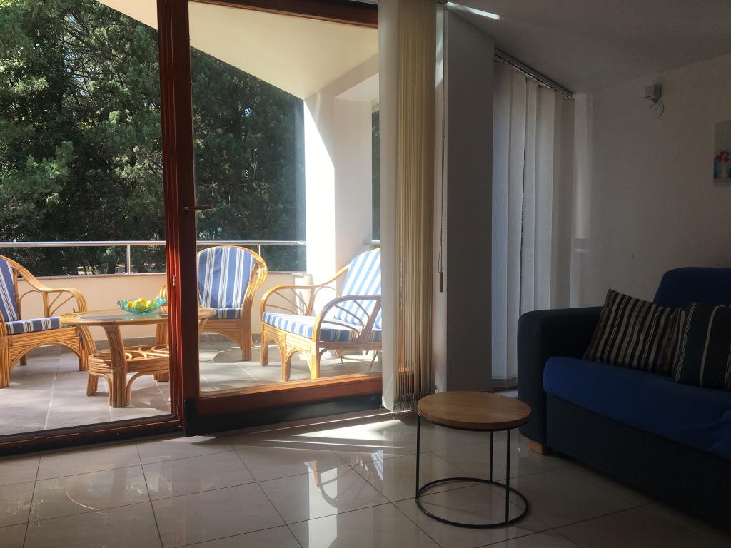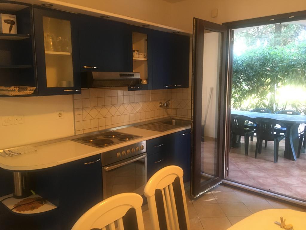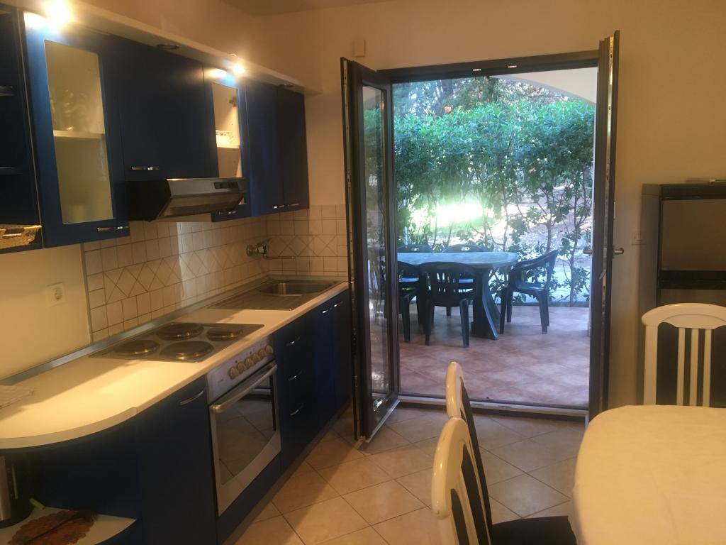 l'appartement comprend deux chambres, un salon, une cuisine avec salle à manger, une salle de bain avec douche et WC. Il dispose de son propre parking, d'une connexion Wi-Fi, est climatisé et équipé, entre autres, d'un lave-linge, et dispose également d'une grande terrasse et d'un barbecue. De la cuisine, on accède à la partie couverte de la terrasse, qui offre la possibilité de manger à l'extérieur. La terrasse est cachée des regards par une clôture végétalisée et offre la possibilité de bronzer. L'appartement est situé dans une pinède à environ 250 m de la plage principale (plage Soline) de Biograd et en même temps non loin du centre de Biograd (front de mer). A proximité immédiate de l'appartement (à environ 150 m de l'appartement) se trouvent des courts de tennis et d'autres installations.