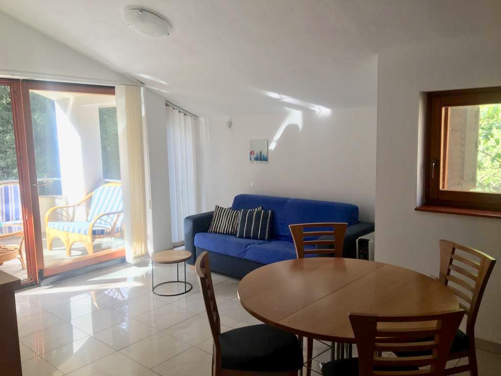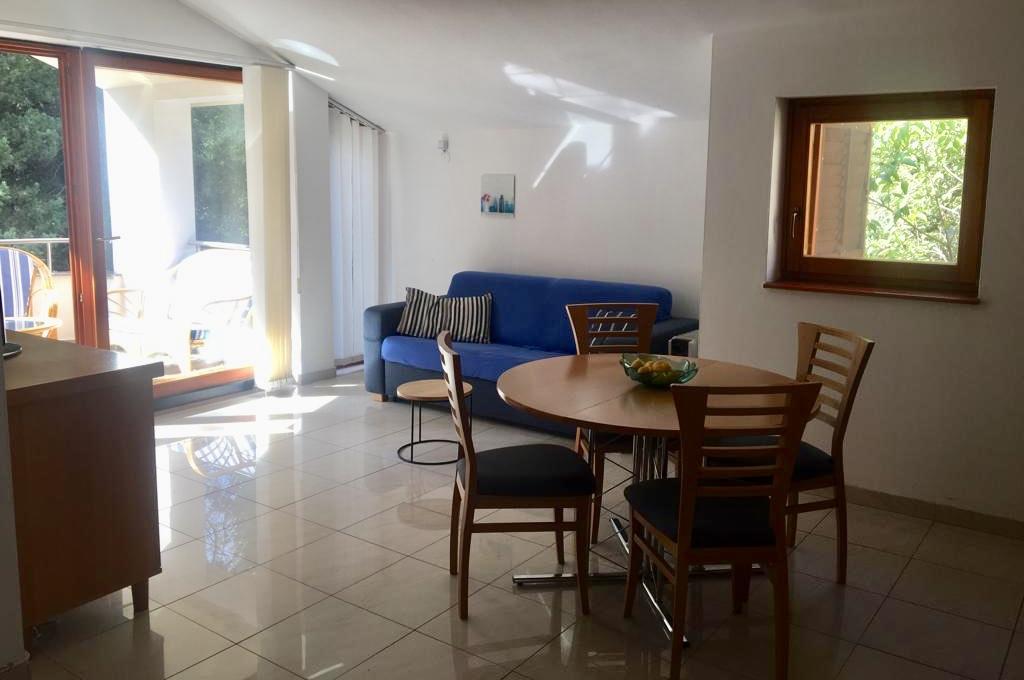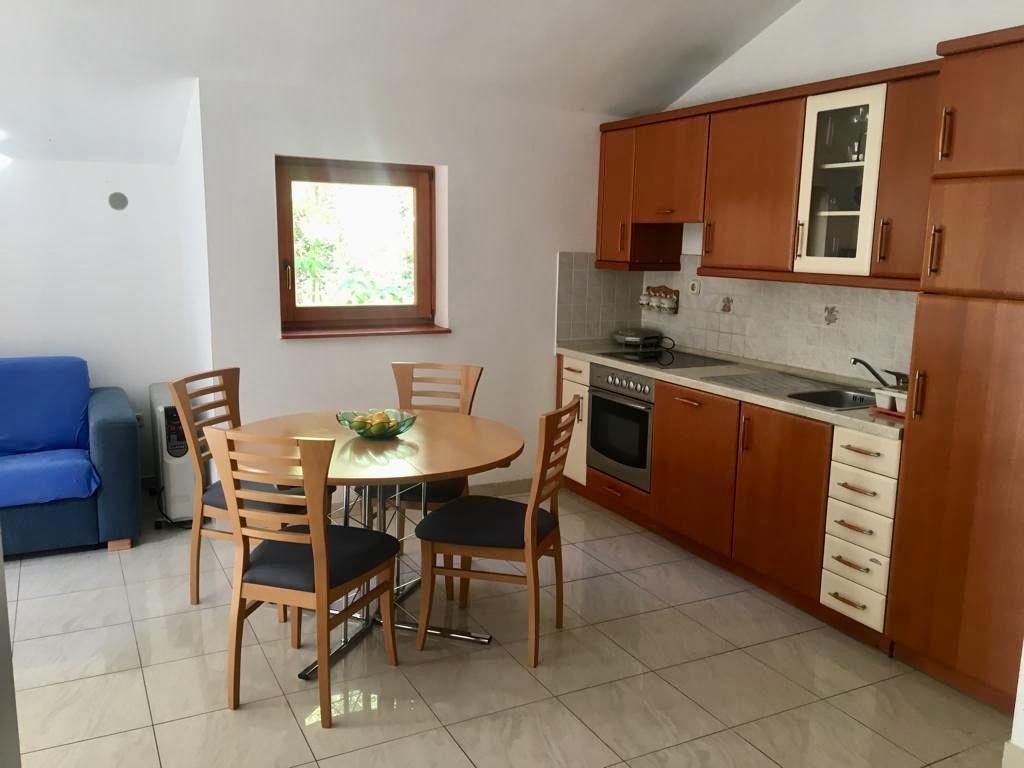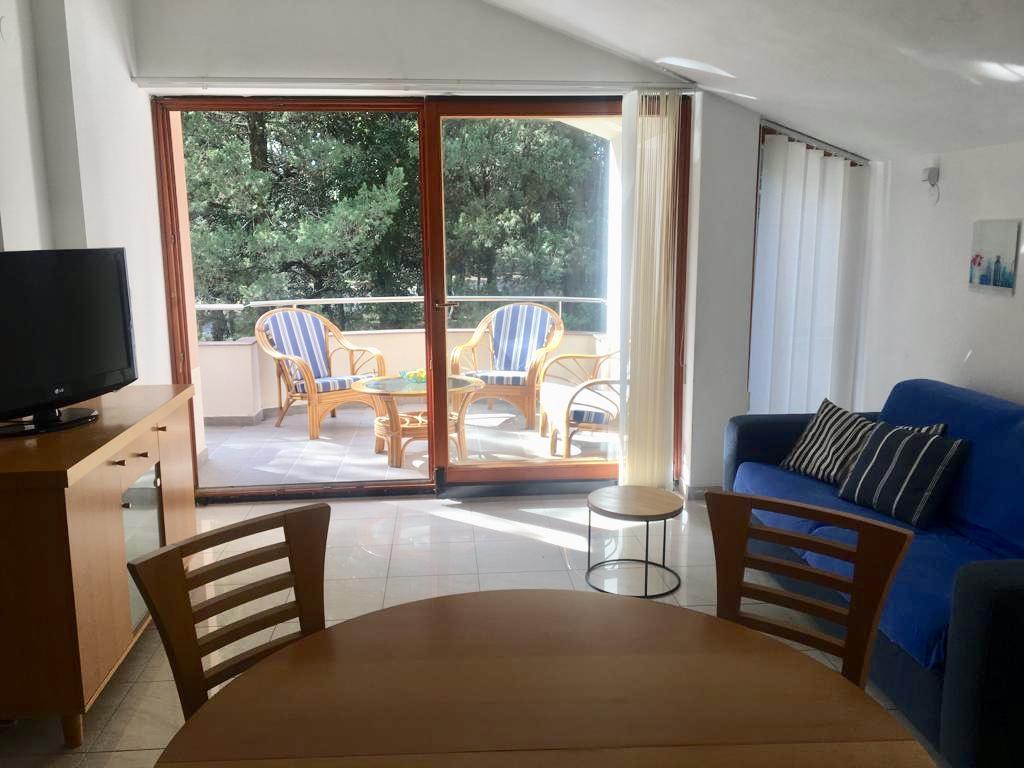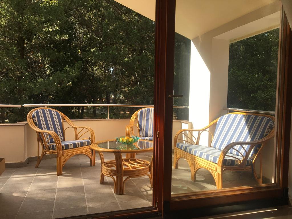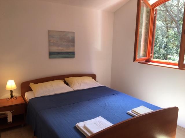 l'appartement comprend deux chambres, un salon, une cuisine avec salle à manger, une salle de bain avec douche et WC. Il dispose de son propre parking, d'une connexion Wi-Fi, est climatisé et équipé, entre autres, d'un lave-linge, et dispose également d'une grande terrasse et d'un barbecue. De la cuisine, on accède à la partie couverte de la terrasse, qui offre la possibilité de manger à l'extérieur. La terrasse est cachée des regards par une clôture végétalisée et offre la possibilité de bronzer. L'appartement est situé dans une pinède à environ 250 m de la plage principale (plage Soline) de Biograd et en même temps non loin du centre de Biograd (front de mer). A proximité immédiate de l'appartement (à environ 150 m de l'appartement) se trouvent des courts de tennis et d'autres installations.