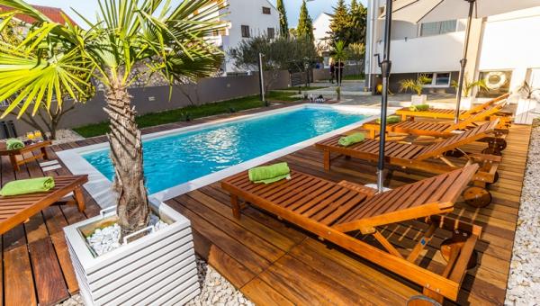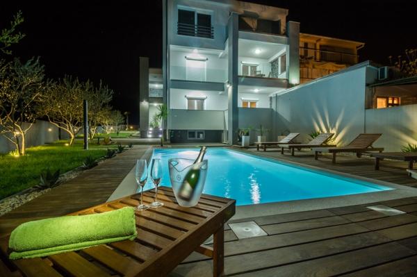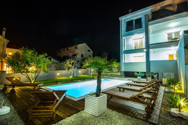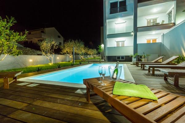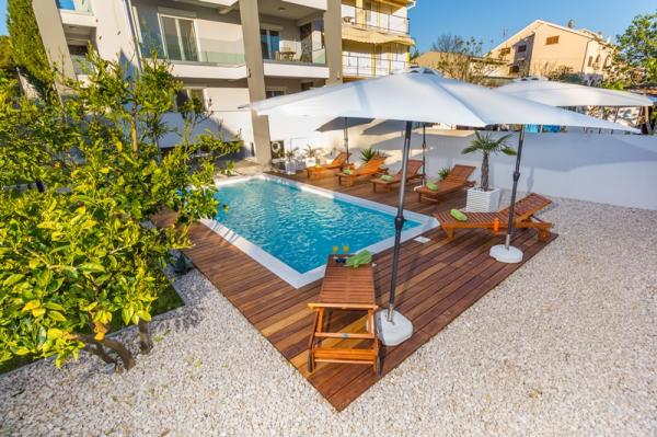 Nous vous proposons quatre nouvelles, entièrement équipées et modernes appartements dans un quartier calme de Biograd. Chaque appartement se compose d'une chambre à coucher, cuisine et salle à manger, salon et salle de bains. Idéal pour deux à quatre personnes. Chacun d'eux est équipé de toutes les commodités nécessaires: air conditionné, télévision par satellite, sans fil, radio, four. . Chaque appartement comprend les draps et serviettes. La maison est entourée d'un grand jardin avec une piscine et un espace détente qui rend cet endroit le choix idéal pour les familles avec enfants et pour les jeunes couples. Dans le barbecue dans la cour est disponible, et chaque appartement a sa propre place de parking.