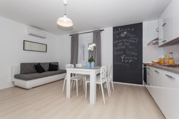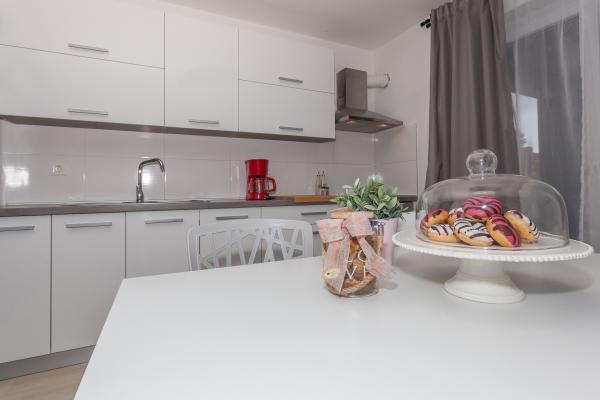 L'appartement est spacieux, bien équipé, une piscine assez grande et propre, l'environnement de l'appartement bien rangé et entretenu régulièrement. Appartement terrasse grand parking à côté de la maison. Réfrigérateur dans l'appartement avec un grand congélateur qui est un gros plus pour le logement en mer. La seule chose qui manquait sont de grands couteaux de cuisine, mais étant donné que nous sommes une famille qui est cuit tous les jours, des petites choses comme des couteaux de cuisine, des casseroles de viande supplémentaire et tissu de cuisine supplémentaire nous avons apporté avec nous, ce n'était pas moins. Vente appartement sur la mer, exactement ce rechercherait. Toutes les recommandations?