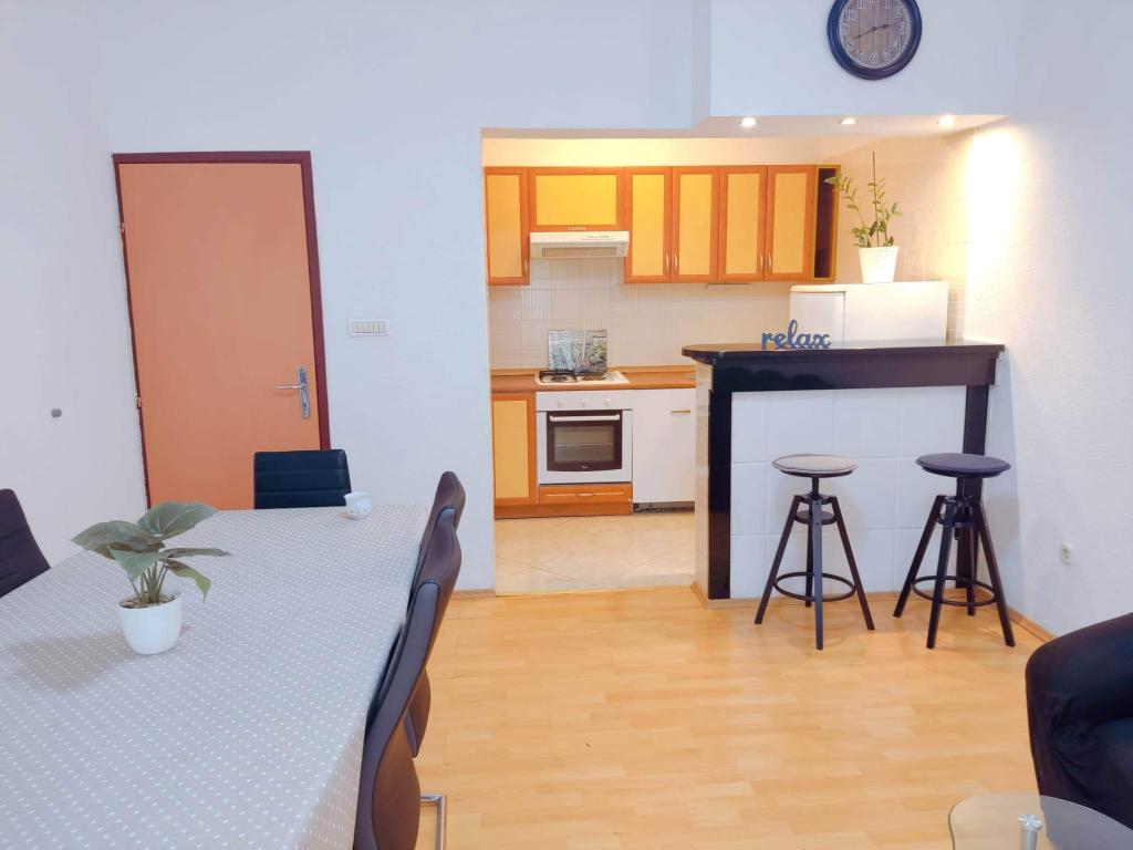 Les appartements sont situés dans un quartier calme, pas de bruit de la circulation; 200 mètres de la plage. Ou 5 min à pied. La plage possède un restaurant, deux bars à café, chaises de plage, parapluies ... La maison se compose de trois unités: rez-de-chaussée, premier étage et au deuxième étage. Le rez de chaussée et premier étage, deux chambres et au deuxième étage est un appartement de trois chambres. La cour est un barbecue à la disposition de tous les clients ainsi que le bois pour le barbecue. Parking pour plusieurs voitures et un garage. Dans le garage il ya un lave-linge que vous pourrez utiliser moyennant un supplément. Air et Internet ne sont pas tarifés séparément.