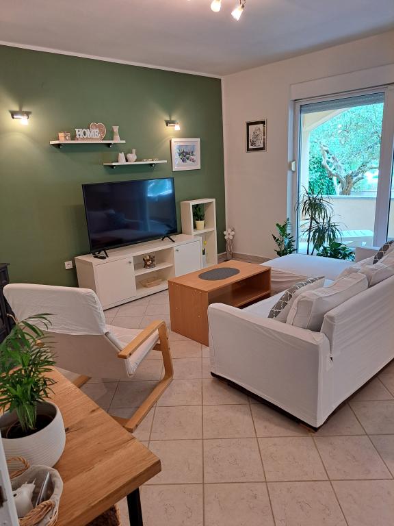 Taxe de sejour est inclus dans le prix. Document de confirmation de réservation lors de la réservationL'appartement est idéalement situé, la plage est à deux pas. Il y a un magasin à proximité, mais à 15-20 minutes à pied, vous êtes au centre-ville, où vous trouverez tout : marché, boulangerie, boutiques, restaurants… Devant la maison, un grand parking à l'ombre des oliviers. L'appartement est extrêmement propre, spacieux, bien agencé et bien équipé, avec tout le nécessaire, notamment la cuisine. Grand balcon avec une belle vue sur les oliviers et la mer. Lit confortable. Tout est encore plus beau en vrai que sur les photos. Les hôtes sont sympathiques et communicatifs. Excellent !