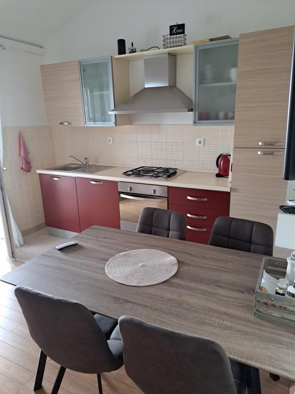 Nous étions en séjour de 2 semaines début juin. 3 adultes, 2 enfants. Appartement parfait pour 5 personnes. Grand espace, propre, bien équipé. Une cuisine toute neuve équipée, entre autres, d'un four et d'un lave-vaisselle. Les plus gros atouts sont la grande terrasse ombragée d'oliviers (elle apporte une agréable fraîcheur et permet de se reposer de la chaleur) et la proximité de la plage. Je sortais le matin avec une tasse de café pour regarder la mer. La plage était presque privée - paix, calme, pas de foule. Parmi les inconvénients - la distance de la ville et des épiceries. Mais si quelqu'un apprécie la paix et le manque de foule - l'endroit parfait. Hôtes très sympathiques et serviables. Bonjour, nous avons dîné dans le frigo et café/thé dans le placard. 100% recommandent !!!