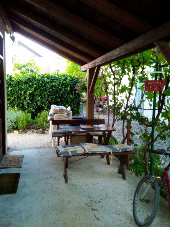 Dans la cour, il y a un grill en brique avec une table pour 8 personnes, une balançoire et une petite table banc pour se reposer et boire du café. L'hôte est toujours disponible pour les invités, car il est constamment présent dans le bâtiment où se trouvent les appartements. La possibilité de récupérer les invités à la gare routière s'ils viennent en bus.