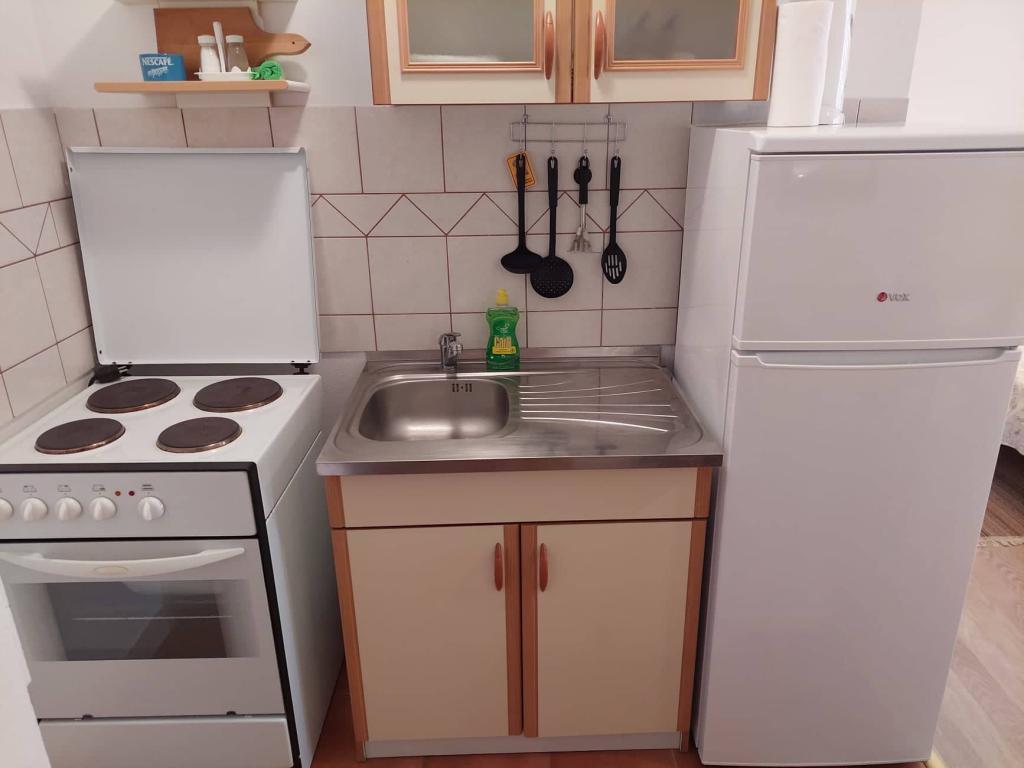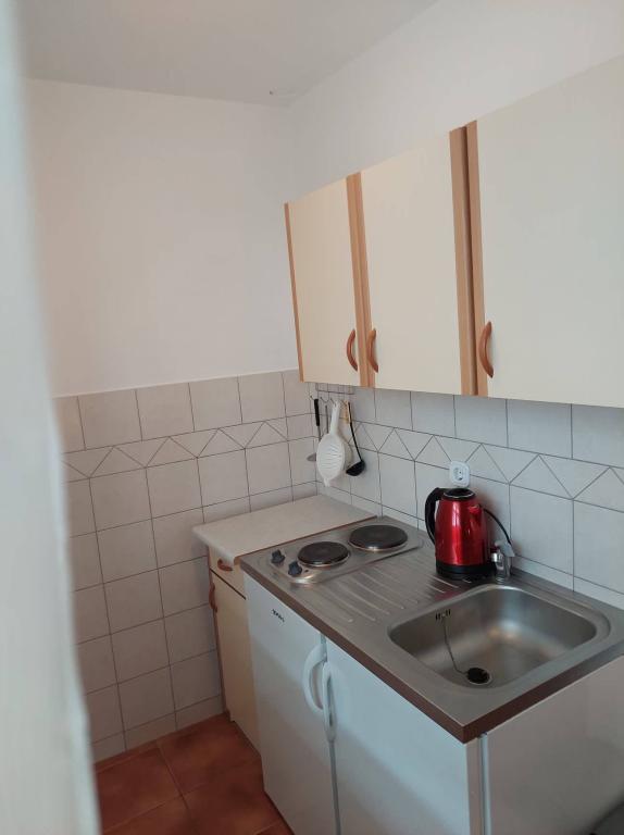 Les appartements sont situés dans le centre-ville, dans une rue calme et sans grande circulation. La distance de la plage et du centre ville est à environ cinq minutes à pied, commerces à proximité. Parking privé pour les invités devant la maison. Chaque appartement dispose de sa propre cuisine, salle de bain et est équipé de la climatisation. Chaque appartement possède sa propre petite terrasse.