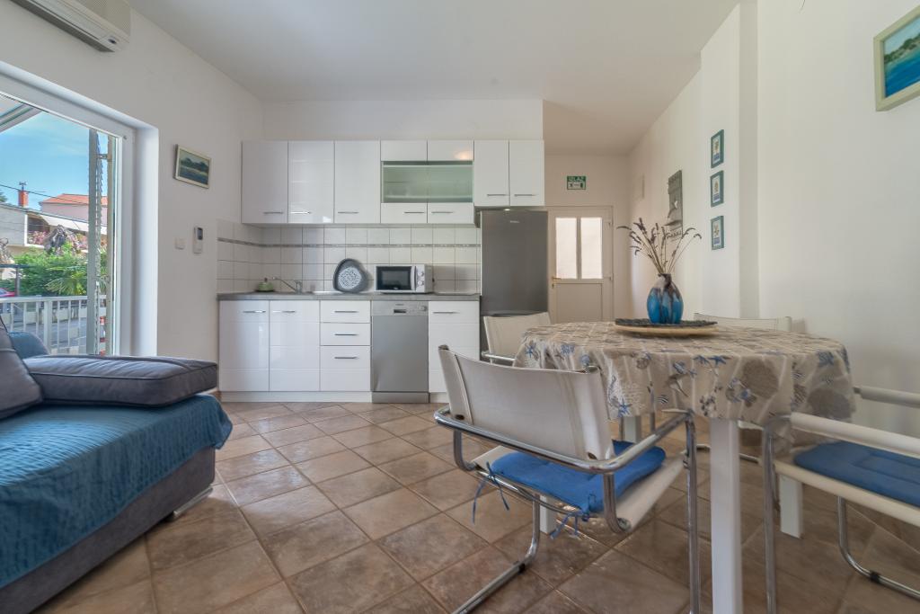 Immeuble Lucija situé dans un excellent emplacement dans une rue calme et paisible à seulement 5 min. à quelques pas de la plage principale de la ville, Dražica, qui a été déclarée plage la mieux équipée de la République de Croatie, ainsi que de toutes les autres installations nécessaires pour passer d'agréables vacances d'été, dont Biograd regorge. Il y a 4 appartements dans la maison, tous de 40 m2, composés d'une chambre avec un lit double, d'un salon avec un canapé-lit pour 2 personnes, d'une cuisine entièrement équipée avec lave-vaisselle, d'une salle de bain avec douche, d'une des toilettes et un lave-linge, une buanderie et un espace d'entrée. Les appartements du 1er étage A-1 et A-2 disposent de grandes terrasses de 30 m2, et ceux du 2ème étage A-3 et A-4 disposent de balcons de 12 m2. Tous les appartements sont superbement équipés : climatisation, WiFi, TV satellite, lits avec matelas à mémoire de forme, cuisines avec lave-vaisselle, grands réfrigérateurs avec congélateur, micro-ondes et cafetière/théière, et tout ce dont vous avez besoin pour préparer et servir les repas. Parking et cuisine d'été avec un grand barbecue dans la cour.