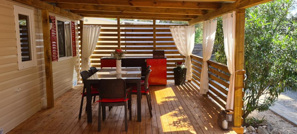 Le Mobil Home Blue Wave II est situé au premier rang de la baie de Soline, à l'abri des regards. Mobil-home entièrement équipé avec deux chambres séparées avec placards, un séjour avec un lit gigogne d'appoint (135x190), une cuisine entièrement équipée avec climatisation et une grande terrasse. La terrasse dispose d'un barbecue, d'une table à manger et de chaises longues confortables. Un accès Internet sans fil est disponible gratuitement dans tout l'établissement.