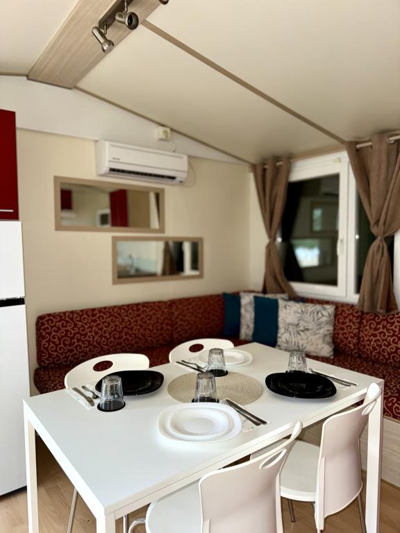 Le mobil-home Bonaca se situe au sein du camping Bakija, à 40 m de la mer, avec un accès direct à la plage. La plage de Soline est à 2-3 minutes à pied, le marché de Studenac à 1 minute et le centre-ville à 7-8 minutes. Entièrement équipé, il comprend un jardin, une cuisine, un salon confortable et un parking. Vous profiterez également d'un barbecue et d'une douche extérieure. Le mobil-home peut accueillir 4 personnes et dispose de 2 chambres et 2 salles de bain. Sa terrasse spacieuse est idéale pour un séjour agréable avec vue sur la mer et de magnifiques couchers de soleil.