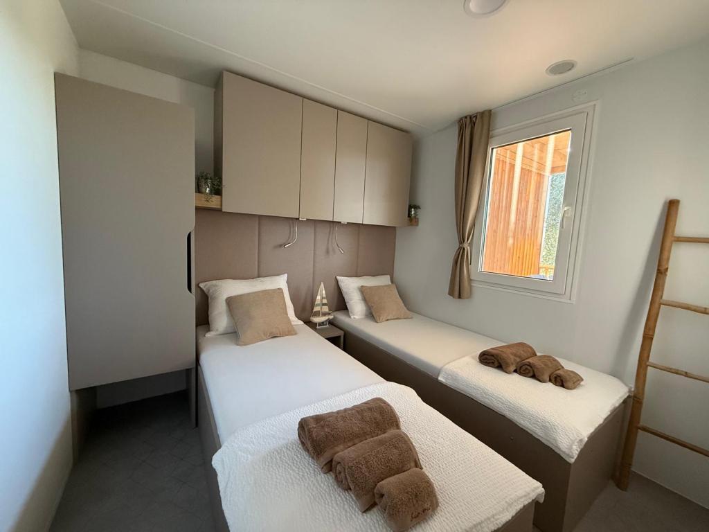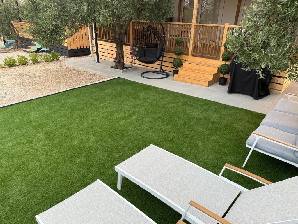 Le mobil-home Holiday Blue est situé dans le camping Marija à Biograd na Moru. Ce mobil-home neuf avec vue sur la mer offre un environnement paisible et des oliveraies. Il est entièrement climatisé. Sa proximité avec le centre-ville vous permet de rejoindre rapidement le centre de Biograd à pied ou à vélo. Outre de nombreux cafés et restaurants, le parc d'aventure Dalmaland (4,5 km), le parc naturel de Vransko jezero (15 km), le parc national de Krka (57 km) et la ville de Zadar sont à proximité.