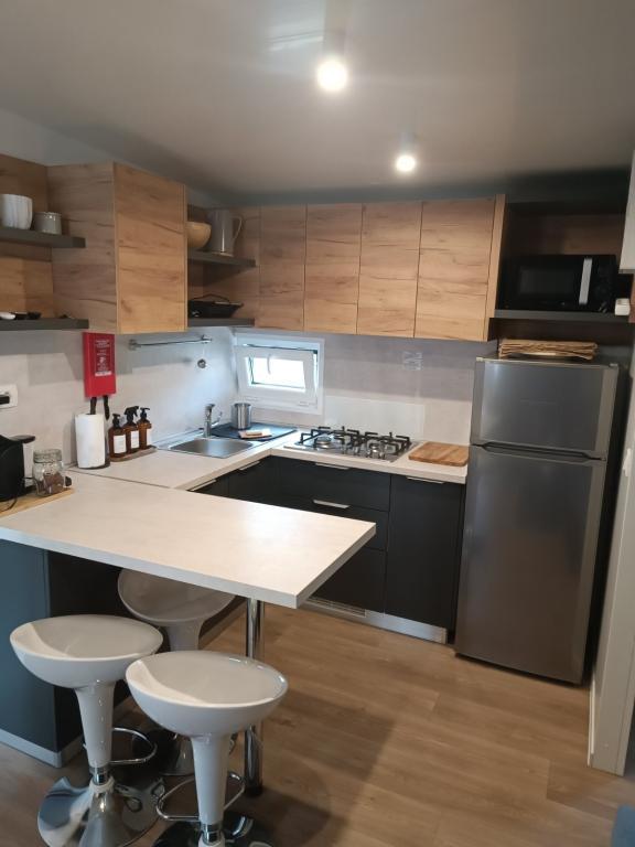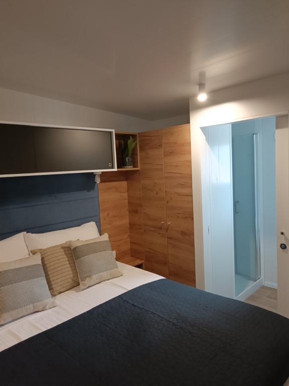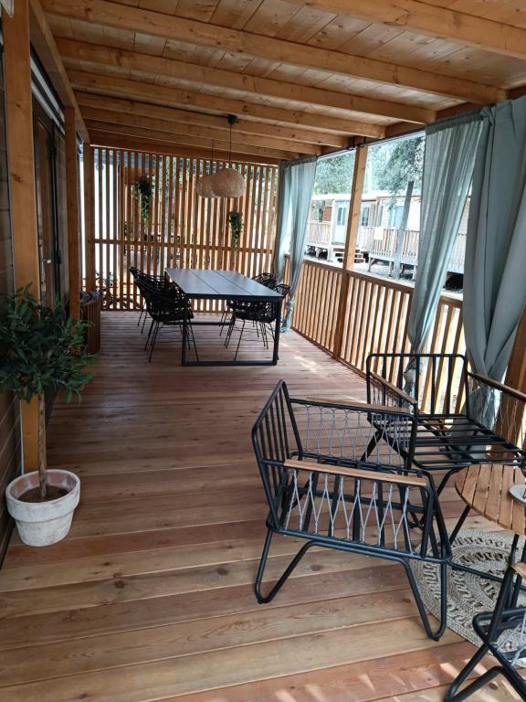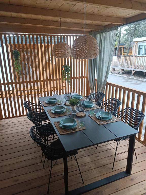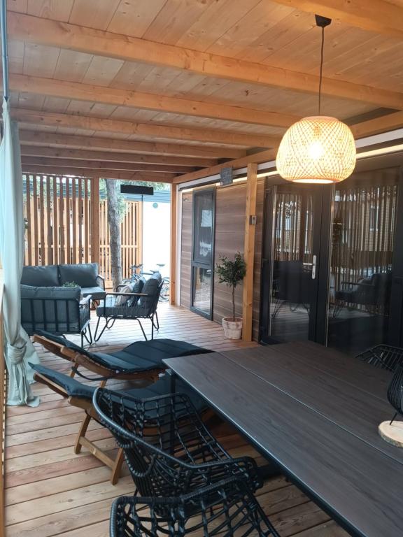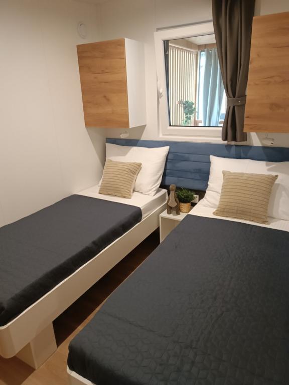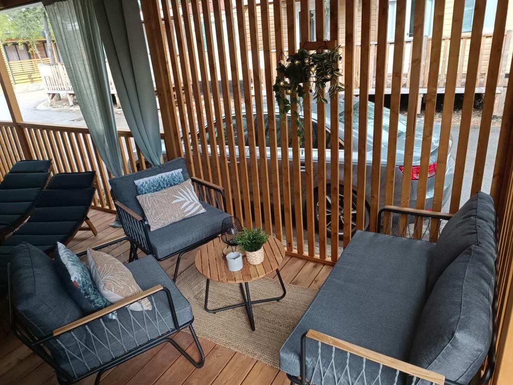 Le mobil-home moderne InnMare 646, situé dans un coin tranquille du camping Soline, au cœur d'une pinède, est idéal pour des vacances en famille. D'une superficie de 32 m², il comprend une chambre avec un lit double, une chambre avec deux lits simples, un séjour avec canapé-lit (1 à 2 personnes), deux salles de bain séparées avec WC, une terrasse de 32 m², un petit jardin et une place de parking. Entièrement meublé, le mobil-home dispose d'une cuisine équipée (four micro-ondes, bouilloire électrique et machine à expresso inclus), d'une table à manger supplémentaire et de transats pour une sieste bercée par le parfum des pins. Un barbecue est également à votre disposition. Une place de parking est réservée aux vacanciers. Bienvenue à l'InnMare 646, un mobil-home moderne conçu pour des vacances familiales paisibles et idylliques dans une pinède, à proximité de la mer, des plages et de Biograd na moru !