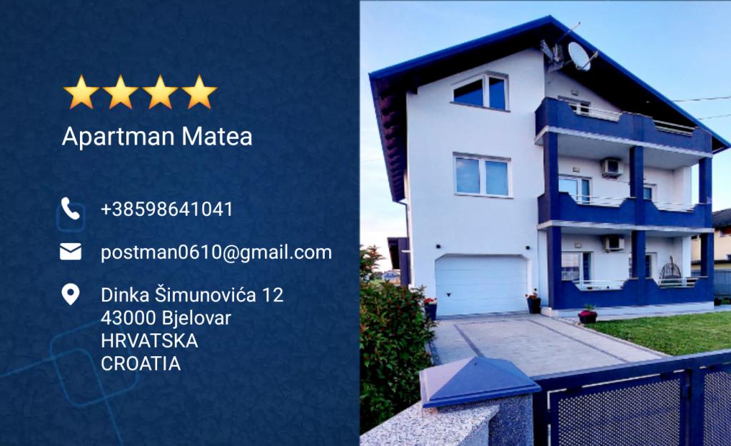 Vous pouvez réserver un séjour dans l'appartement Matea par téléphone portable (SMS, WhatsApp, Viber) ou par e-mail. Le règlement de la réservation peut se faire par virement bancaire ou, d'un commun accord, en espèces à votre arrivée à l'appartement. Le départ de l'appartement se fait jusqu'à 12h00 ou à convenir, et l'arrivée à partir de 14h00 ou à convenir. Les horaires d'arrivée et de départ sont flexibles. Si vous arrivez à Bjelovar en transports en commun (bus ou train), nous assurons votre transfert aller-retour le jour de votre départ, sans frais supplémentaires.