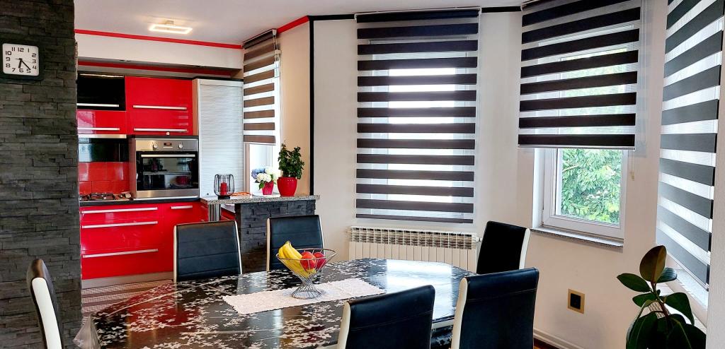 Venez passer de merveilleuses vacances dans notre appartement Matea, décoré avec goût et situé dans le charmant quartier paisible de Bjelovar ! Ce spacieux appartement de 70 m² peut accueillir jusqu'à 4 personnes et se trouve dans une rue calme, à seulement 2 km du centre-ville, à l'abri du bruit de la circulation. L'appartement comprend une chambre, une salle de bains, une cuisine, un salon, une salle à manger, un balcon et une terrasse couverte. La propriété inclut un parking pour 3 à 4 voitures et la possibilité d'utiliser un garage, une terrasse couverte avec un barbecue pour 10 personnes, une aire de jeux pour enfants et un jardin clos et verdoyant de 700 m².