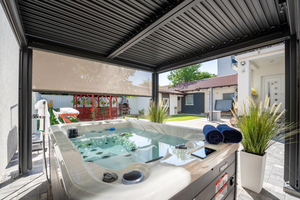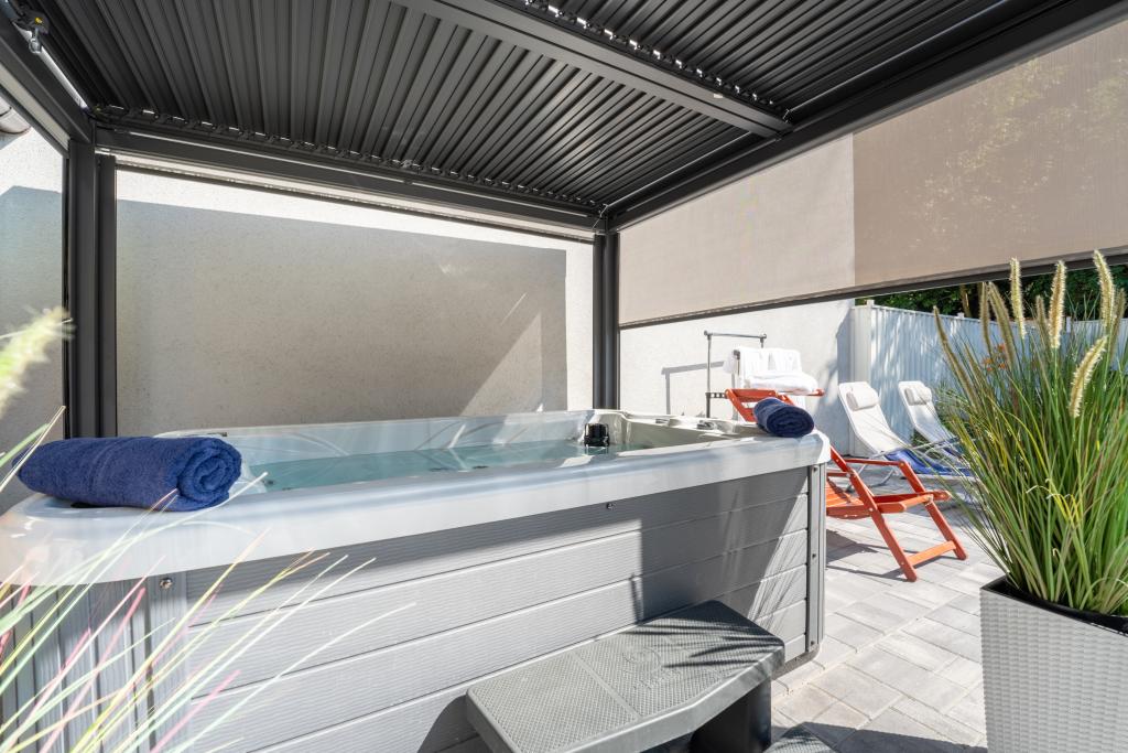 Gazebo, jacuzzi, sauna, vélos, scooters.