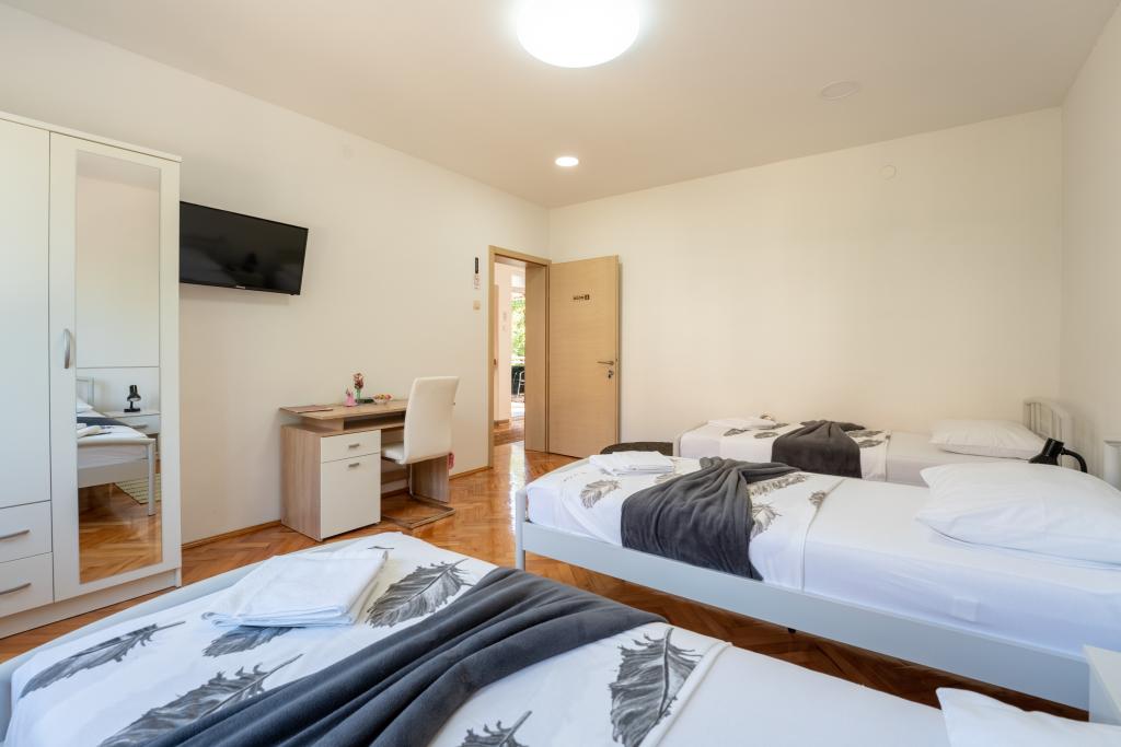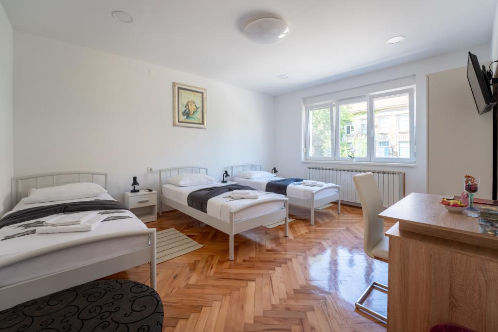 Chambres Matic A. Mihanovića 13C, chambres entièrement meublées de façon moderne dans le centre de Bjelovar, en face de l'hôpital. WIFI gratuit, parking GRATUIT, barbecue gratuit, première zone urbaine. Chaque chambre dispose de 3 lits et d'une salle de bain séparée avec WC, cuisine, TV écran plat LED et toutes les chambres disposent d'un éclairage LED. Accès internet WIFI gratuit. Les salles de bains sont équipées d'un lave-linge. La maison dispose d'un parking privé ouvert gratuit. Les chambres sont équipées de climatiseurs gratuits. Elles sont chauffées par un radiateur central et refroidies par la climatisation. Utilisation gratuite du grill, nous disposons d'un gazebo pour nos hôtes avec la possibilité d'utiliser 9 chaises et une table. L'établissement est équipé d'un jacuzzi et d'un sauna infrarouge. Utilisation avec accord particulier et paiement supplémentaire. Nous sommes enregistrés comme installation bike&bad et disposons de 5 vélos et 3 scooters. Si vous arrivez à Bjelovar par les transports en commun, nous viendrons vous chercher et vous conduirons gratuitement à notre établissement. Bienvenue chez nous !