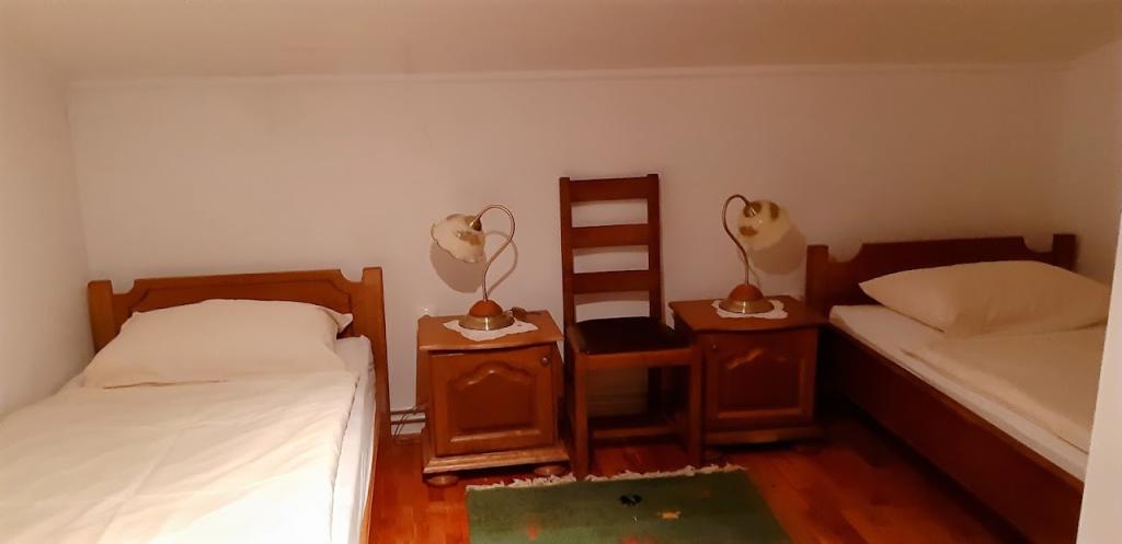 Maison familiale avec chambres à louer sur les pentes de Bilogora. Dans les combles se trouvent trois chambres avec salles de bain, un grand salon commun et une terrasse extérieure. Autour de la maison il y a une grande cour avec une terrasse couverte à côté de laquelle il y a un grill, qui peut être utilisé. Dans le verger, nous avons également un belvédère à partir duquel vous pouvez observer les daims.