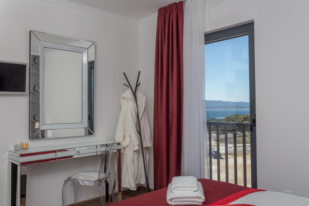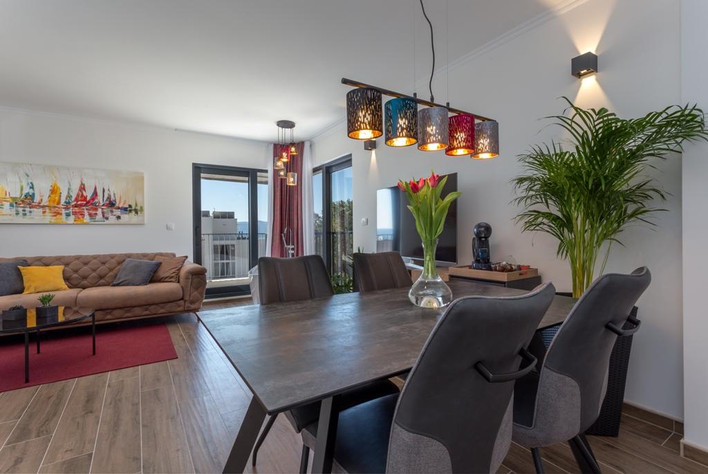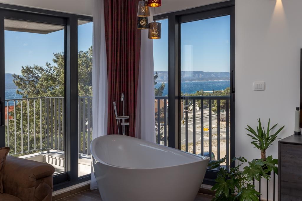 L'appartement Pleasure Bol est une superbe combinaison de positionnement, de confort et de connectivité. Vous avez choisi le meilleur car en entrant dans la ville de Bol, vous accédez à votre espace garage au rez-de-chaussée de l'appartement et là, tous les soucis concernant la sécurité de votre voiture, dont vous n'avez plus besoin pour votre séjour à Bol, prennent fin. Entrer dans l'appartement vous fera sourire car, outre les détails de conception, la vue est attirée par les grandes parois vitrées qui révèlent la plage de Zlatni Rat, la mer ouverte et un magnifique coucher de soleil juste devant vous. Lorsque vous sortez sur la terrasse, tout cela est complété par une vue imprenable sur le plus haut sommet de l'île de Brač - Vidova Gora (778 m).