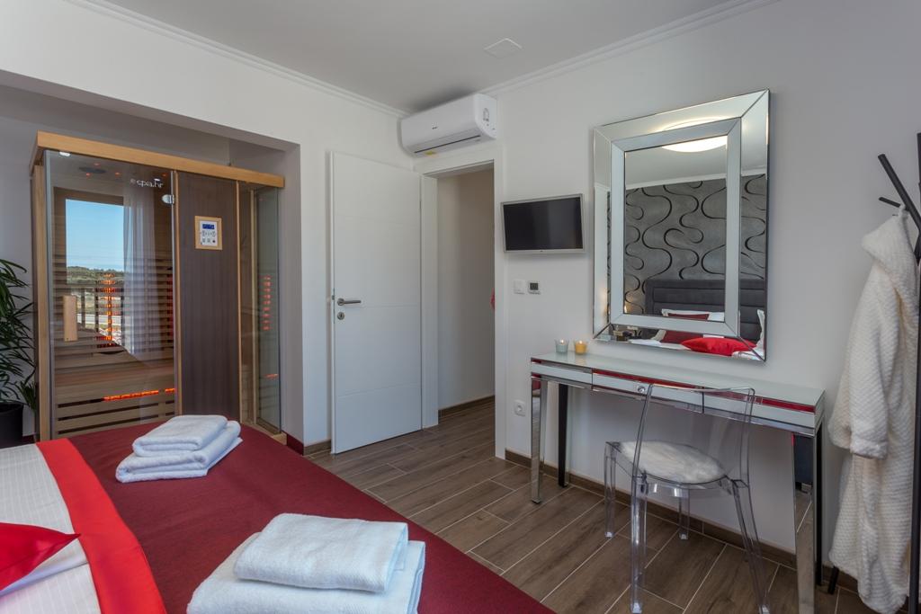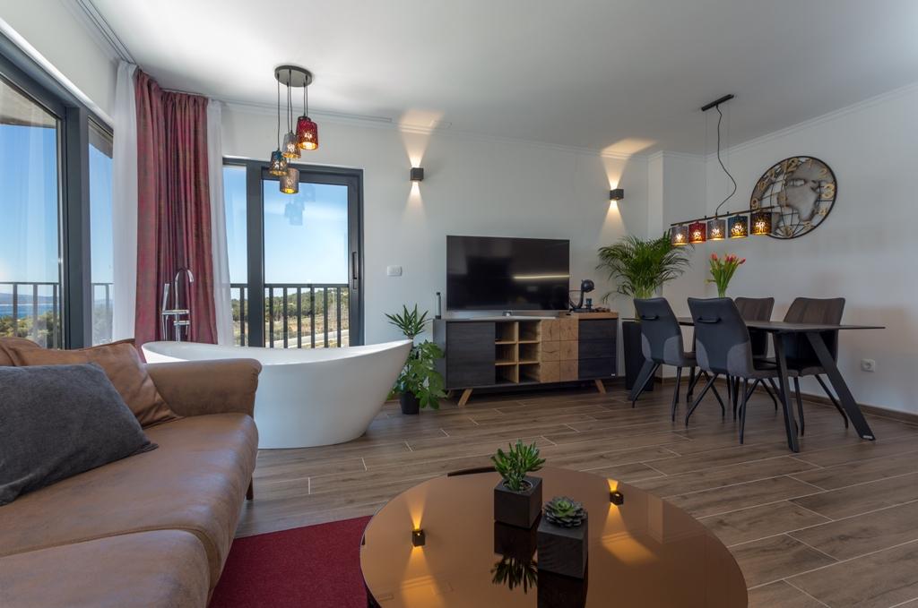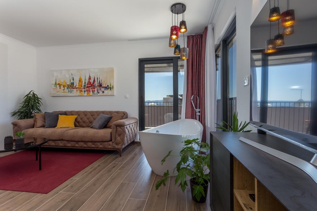 Taxe de sejour est inclus dans le prix. Document de confirmation de réservation lors de la réservationL'Appartement Plaisir est conçu pour le plaisir à deux, non seulement en été, mais toute l'année, car nous vous avons imaginé dans un bain à remous au milieu du salon, qui offre une vue magnifique et apaisante. Et chauffage au sol, sauna, lit King Size 200x200cm de qualité supérieure, douche à l'italienne avec peignoirs, deux Smart TV, Netflix, coffre-fort, serviettes de plage, cuisine entièrement équipée avec machine à café Dolce Gusto et la possibilité de choisir un petit-déjeuner de qualité supérieure.... Tout est subordonné à vous, et c'est à vous d'en PROFITER !