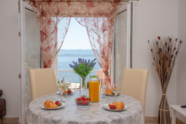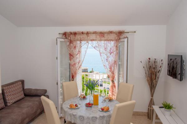 Taxe de sejour n'est pas incluse dans le prix.L'appartement n°1 dispose de 2 chambres, 2 salles de bains, un salon et cuisine combinés et une terrasse avec vue sur la mer. L'appartement n°2 dispose de 2 chambres, d'une salle de bain, d'un salon et d'une cuisine combinés avec une terrasse avec vue sur la mer. Le studio est un appartement confortable comprenant une chambre, une cuisine et une salle de bain. Terrasse avec vue sur la mer.